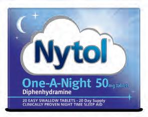 Nytol One-A-Night 50mg Tablets (P) contains diphenhydramine hydrochloride. An aid to the relief of temporary sleep disturbance. MAH: Omega Pharma Limited, Wrafton, Braunton, Devon, EX33 2DL, UK. Information about the product including adverse reactions, precautions, contra-indications and method of use can be found at: https://mhraproducts4853.blob.core.windows.net/docs/fa3316290dcfe1c72ba262c95492b35c5f6f010f