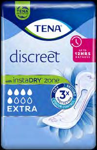 TENA discreet pads effectively lock in moisture to keep you dry for up to 12 hours offering your customers superior protection day or night.