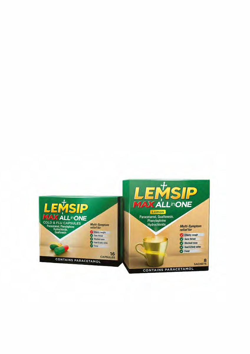 References: 1. EMC, electronic medicines compendium. Lemsip Max Cold & Flu Lemon. Updated March 2025. Accessed June 2025. Available at https://www.medicines.org.uk/emc/product/5612/smpc 2. EMC, electronic medicines compendium. Lemsip Max Cold & Flu Capsules. Updated March 2025. Accessed June 2025. Available at https://www.medicines.org.uk/emc/product/5617/smpc.