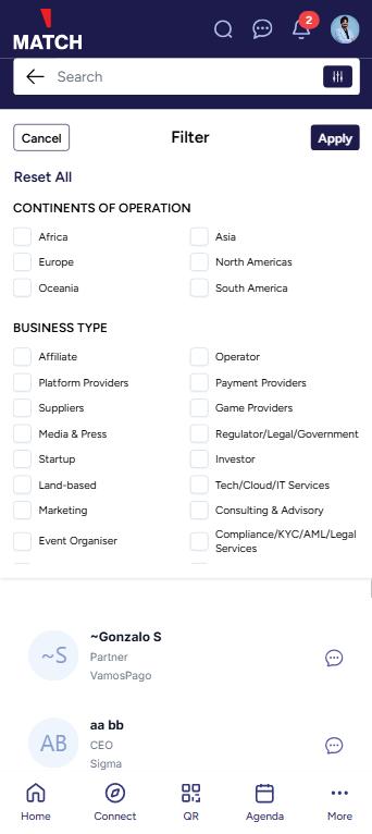 Note: The filter will work if you have filled your profile correctly. It is mandatory for all attendees to complete their profile after logging into the app.
