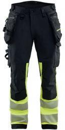 FUNKSJONALITET: 4-veisstretch DETALJER: Gylf med glidelås i plast, To hemper i sidene med én knapp til hammerholder, Brede hemper bak og i sidene, Metallknapper, Knivholder med knapp, D-ring i linningen, Innerbenssøm med 3-nålssøm, Avtagbar ID-kortlomme, D-ring LOMMER: Baklommer med belg, Benlomme med belg og klaff med borrelåslukking samt innfelt telefonlomme i mesh, Benlomme med glidelås, Innstikkslommer, Verktøylommer – ekstra brede, utstyrt med verktøyhemper og ekstra verktøyrom, Forsterket tommestokklomme med knivholder og pennelomme FORSTERKNING: Forsterkning på tommestokklomme, verktøylommer og baklommer REFLEKS: Refleksdetaljer på benlomme SERTIFISERING: Oeko-Tex std 100, SE 23-302, RISE 1989
