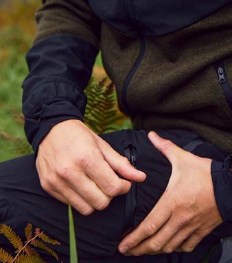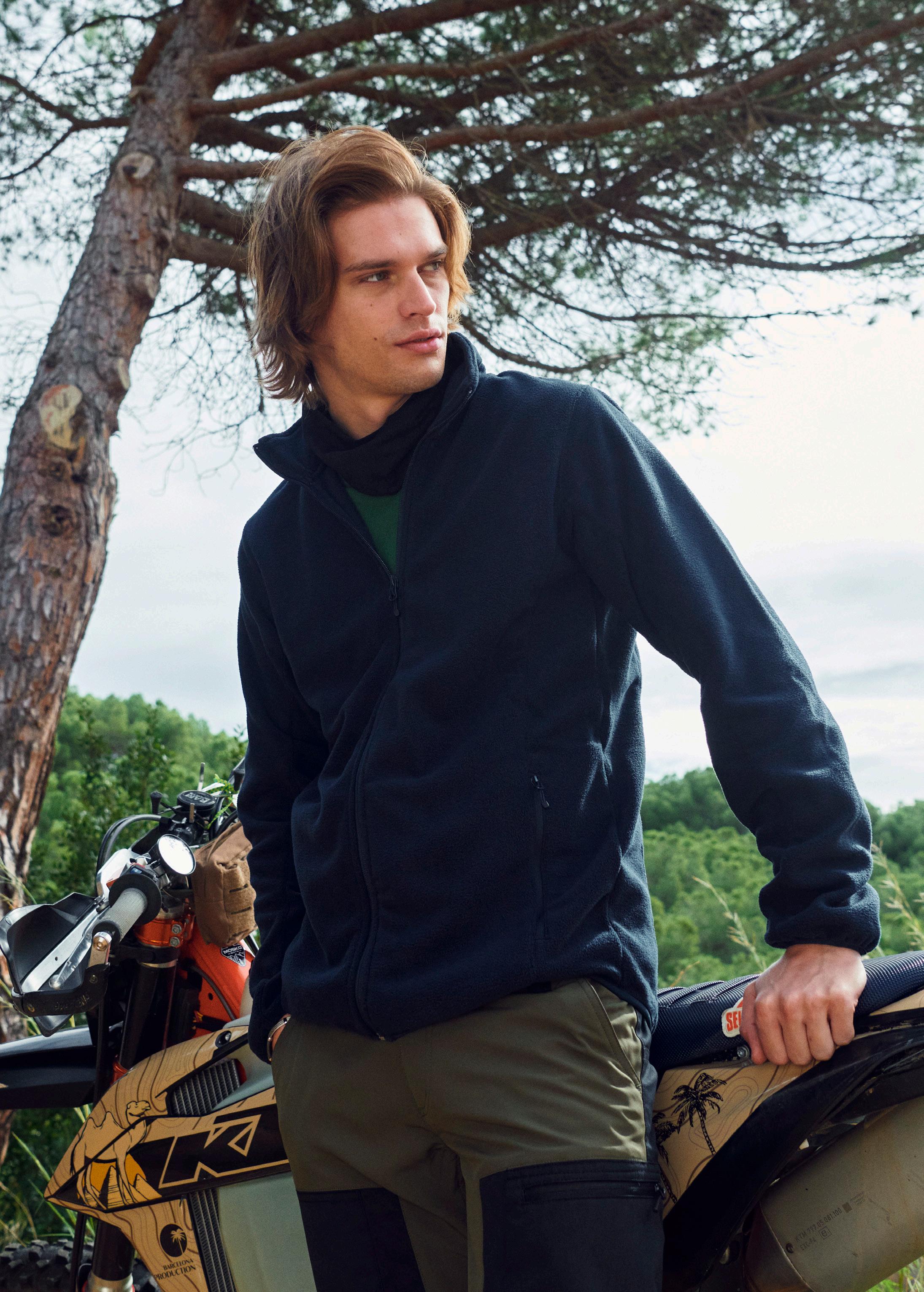 Multiscarf i elastisk fleece med en reflekterande flatlocksstickning.