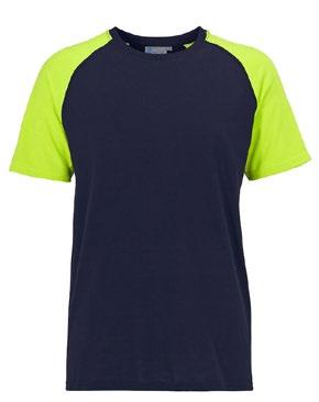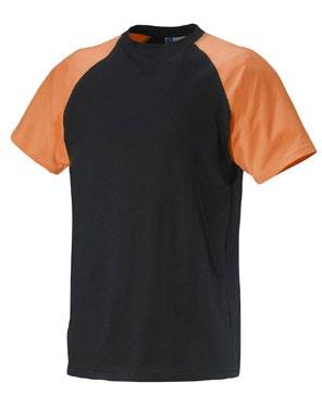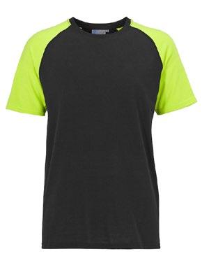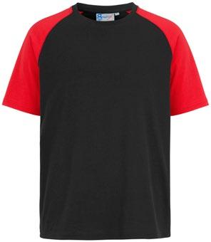 Tvåfärgad T-shirt med sidsöm och raglanärm. Smal halsribb och nackband.