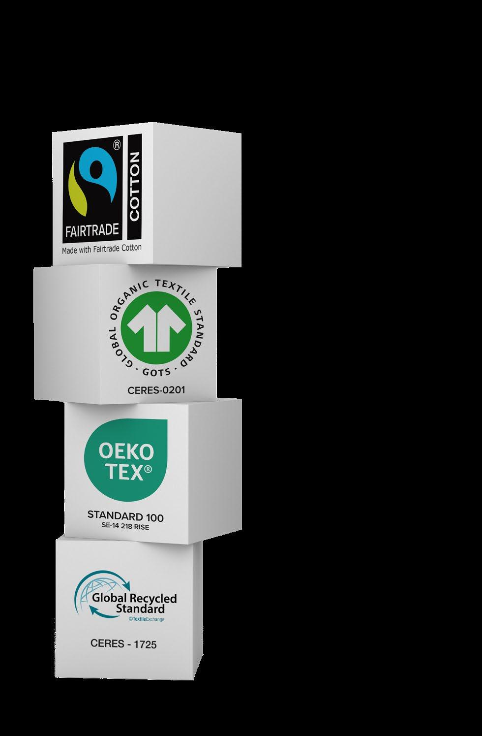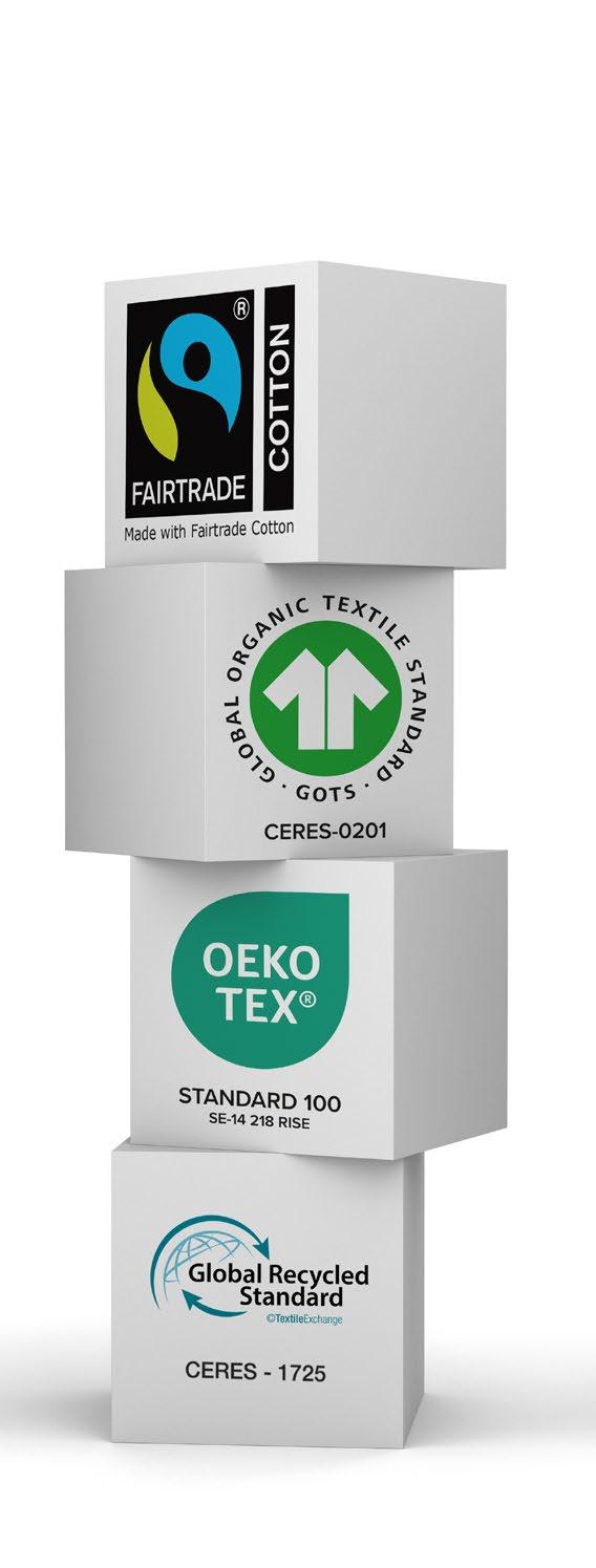 Vi vill att produkterna skall vara hållbara, med god kvalitet för att hålla och användas länge. Vi har tagit fram produkterna, men det är först när ni väljer certifierade produkter framför konventionella som vi gör verklig skillnad. Det är komplicerat, men det blir lätt för er, välj produkter med tredjepartscertifieringar så vet ni att det är en hållbart tillverkad produkt.