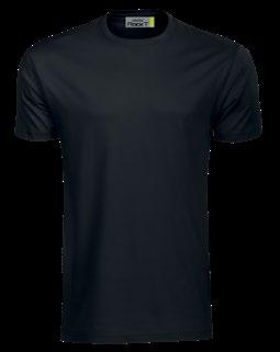 T-shirt med stretch, herrmodellen är rundhalsad och dam v-neck, båda slim fit.