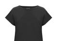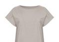 Feminin topp i generöst tilltagen modell med fint fall. Holkärm och dekorativ båtringning med kantband. Tryckt etikett i nacken.