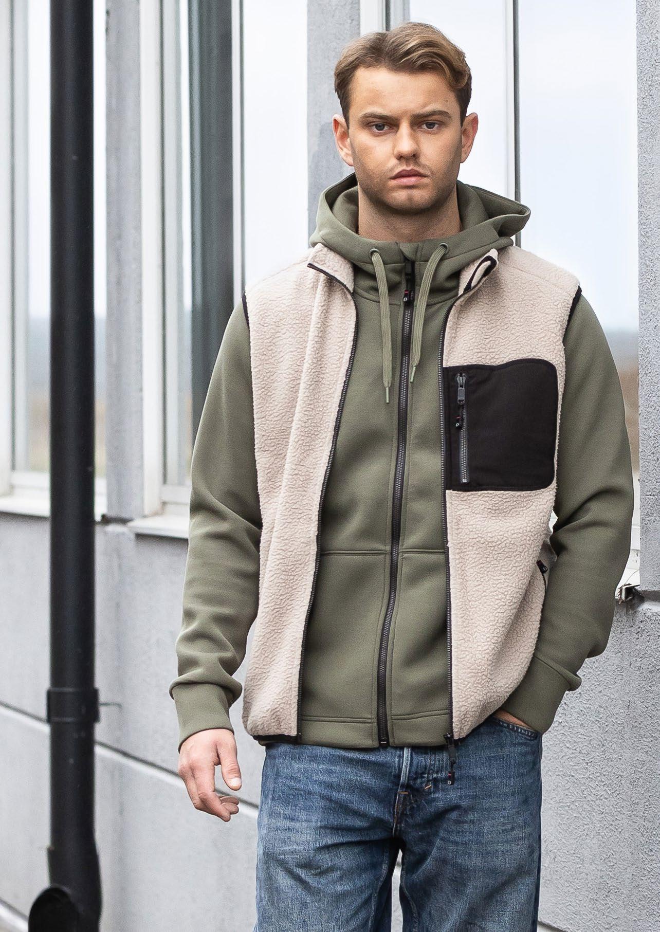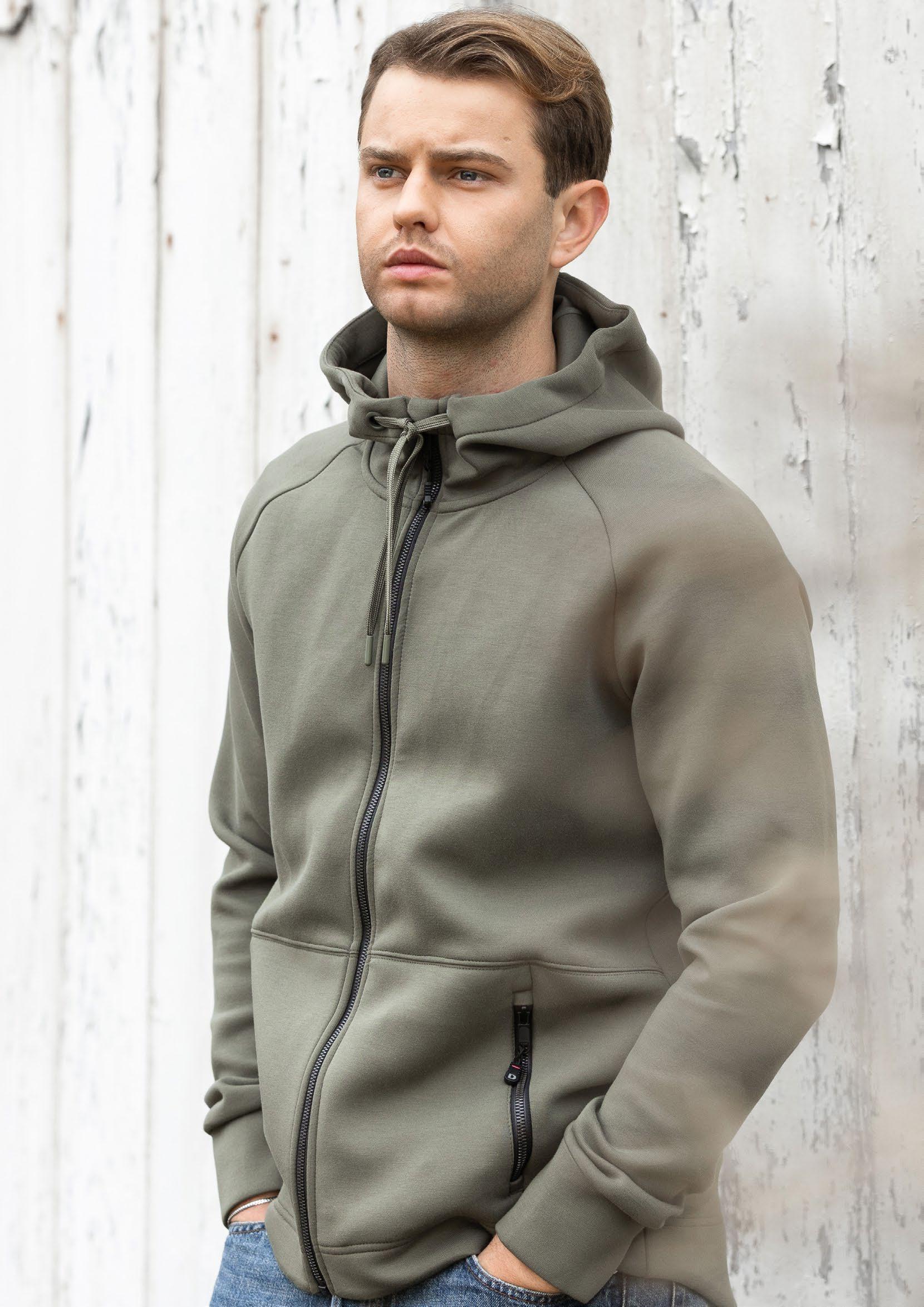 Huvtröja i modernt snitt med borstad insida. Hel dragkedja som går upp något i huvan. Två utanpåfickor framtill. Mudd i ärmslut och nederkant. Dragsko i huva.