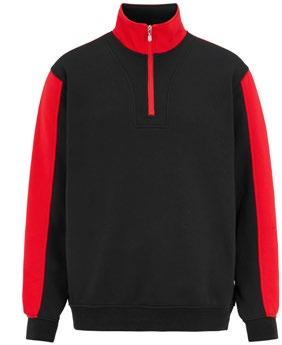 Halfzip sweatshirt med kontrastfärg på ärmar, krage, axelparti bak och dragkedja, borstad insida.