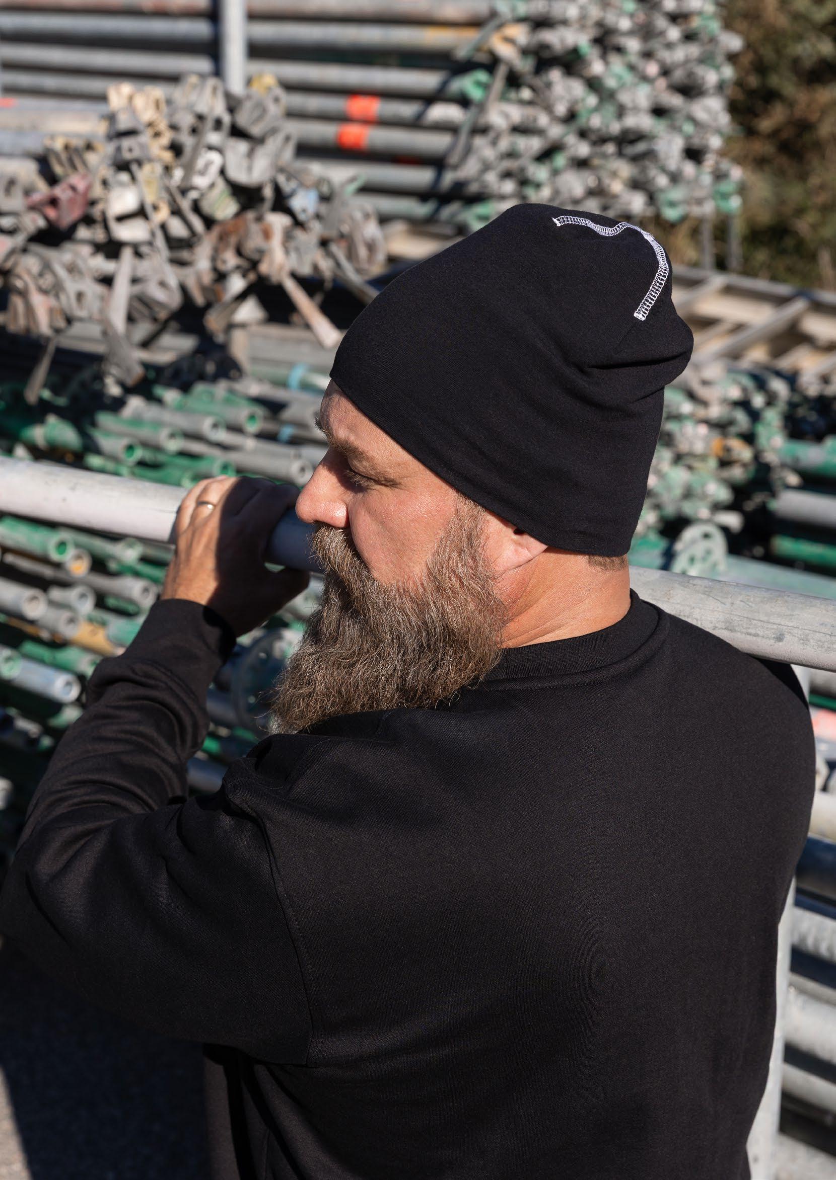 Mössa i singeljersey kvalitet med dekorations sömmar ton i ton. Slätstickad för att underlätta märkning.