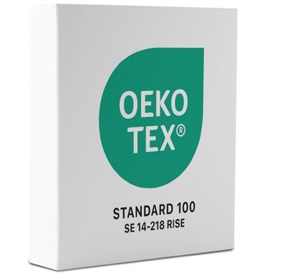 Världens mest kända och spridda varumärke i världen för produktmärkning av textilier. Produkterna uppfyller höga humanekologiska krav, d.v.s. de innehåller inte kemikalier i halter som är hälsoskadliga. Oeko-Tex är en garanti för att produkterna efterlever EU:s kemikalielagstiftning REACH (Registration, Evaluation, Authorisation and Restriction of Chemicals).