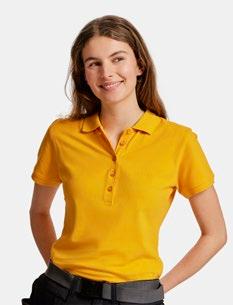 Pikétröja, single lacost knit med knappslå fram med 3 st ton-i ton knappar (dammodellen 5567 har 5 knappar). Sprund i sidorna. Krage och ärmslut i ribb. Orange kantband på insidan av halshålet och i sprund. Dekorativt tygmärke på höger ärm (endast färg 7600 Olivgrön). Certifierad enligt Oeko-tex.