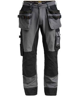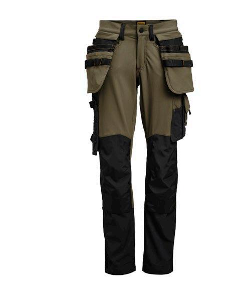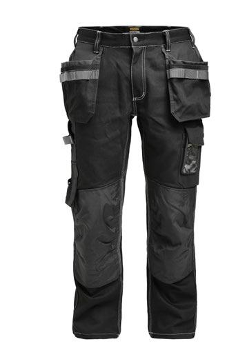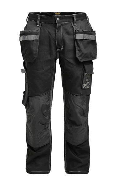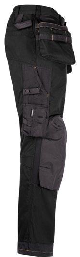 Smidig 4-vägs stretch i slitstarkt Rip-stop material. Grenkil med förstärkt stretch Cordura®. Rymliga hölsterfickor med extrafack och förstärkt insida, kan stoppas ned i framfickorna. Stolpfickor bak. Rymlig benficka med täckt blixtlås, ID-kortsfack och mobilficka. Hammarhank, tumstocksficka med knivhållare. Silikonbandet i byxlinningen håller byxan på plats, extra hällor för bältet på de större storlekarna.