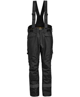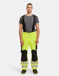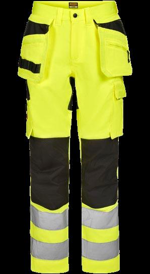 Smidig 4-vägs stretch i slitstarkt Rip-stop material. Grenkil med förstärkt stretch Cordura®. Rymliga hölsterfickor med extrafack och förstärkt insida som kan stoppas ned i framfickorna. Silikonbandet i byxlinningen håller byxan på plats. Extra hällor för bältet på de största storlekarna. Stolpfickor bak. Hammarhank, tumstocksficka med knivhållare. Benficka med täckt blixtlås, ID-kortsfack och telefonficka. Förböjda knän med knäskyddsfickor i slitstark stretch Cordura® med 3M™ reflexpasspoaler och två höjdnivåer. Mesh i knävecken för ventilation. Reflexdetalj för ökad synbarhet i knävecken. Förstärkningar i Cordura® och polyamid.