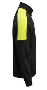 Pälsfiberjacka med partier av tyg vid armbågar och bröstficka. Blixtlåsförsedda fickor fram. Bröstfickan är lämplig plats för transfertryck. Elastiskt kantband i kontrastfärg fram, runt kragen och vid ärmavslut. Reglerbar i nederkant med dragsko.