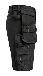 Shorts i 4-vägs stretch med partier av slitstarkt vävt tyg i benfickor och hölsterfickor. Avtagbara hölsterfickor med zip-in funktion och med extrafack och förstärkt insida, kan stoppas ned i framfickorna. Stretchigt midjeband. Stolpfickor bak. Hammarhank. Tumstocksficka med knivhållare. Benficka med täckt blixtlås, ID-kortsfack och telefonfack.