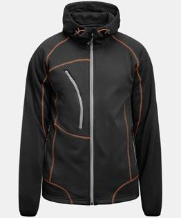 Softshelljacka med förstärkningsmaterial/ kontrast på ärm och bröstficka. Avtagbar huva, elastisk dragsko runt öppningen. Blixtlåsförsedda framfickor och bröstficka på höger sida fram. Insida i ”birdeye knit” ger bra fukttransport. Blixtlås fram av delrin typ med vattenavvisande zip-tape. Jackan är reglerbar med elastisk dragsko nedtill. Förböjda ärmar. Reglerbara ärmavslut med kardborre-straps. Vattenpelare: 3000 mm. Andasfunktion: 3000 g/m² 24h. Yttertyget har en flourkarbonfri BIONIC-FINISH® DWR-behandling. Certifierad enligt Oeko-tex.