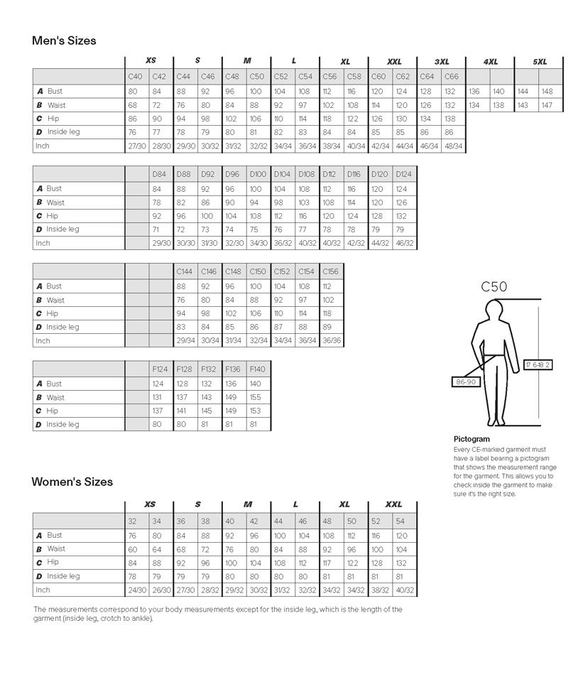 Det är särskilt viktigt att välja rätt benlängd vid val av byxa med knäskydds-ficka, så att den placeras rätt på benet. I stort sett alla våra herrbyxor finns i tre storleksintervaller. C-storlekar finns i normal benlängd, t.ex. C50, C-storlekar med lång benlängd, t.ex. C150 och D-storlekar med kort benlängd t.ex. D96.
