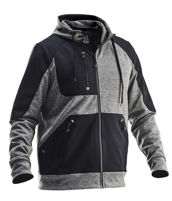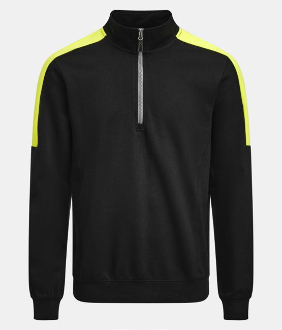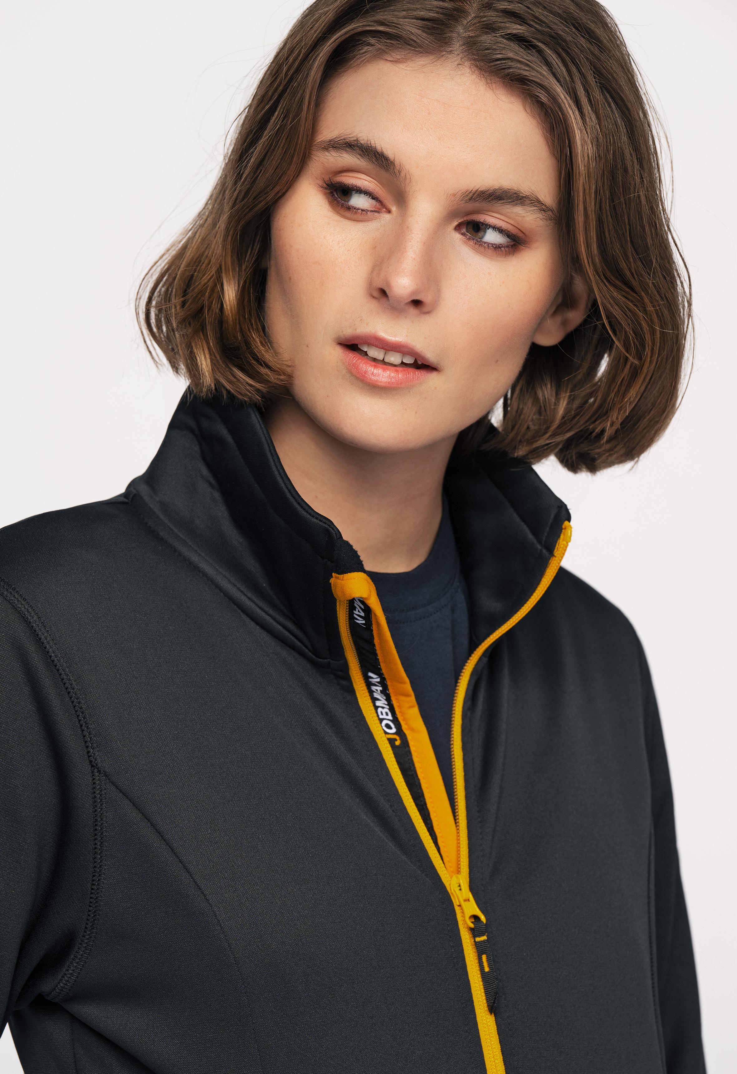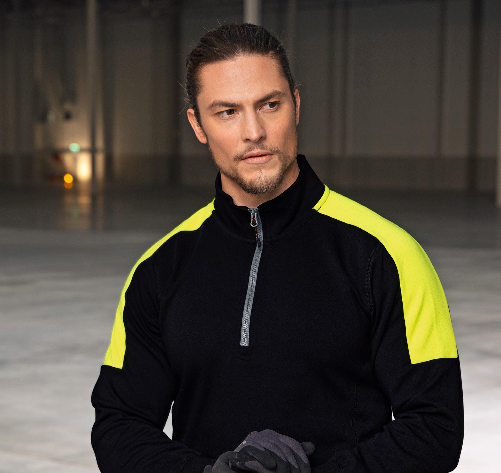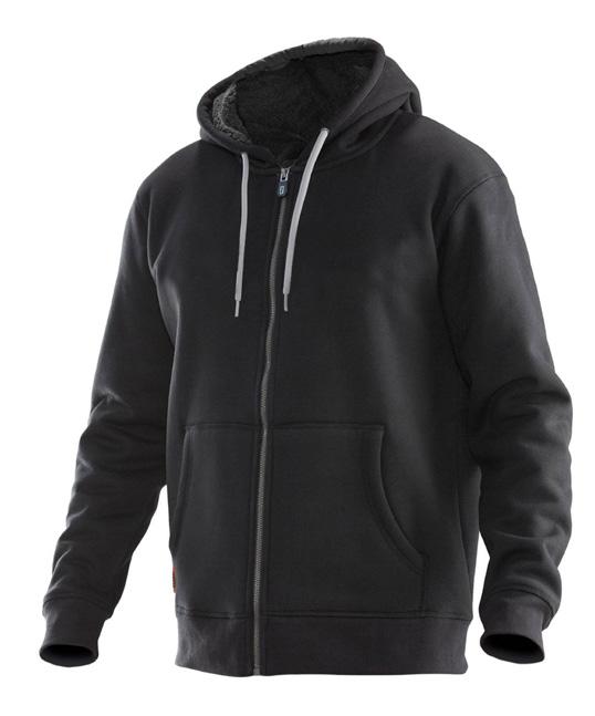 Sweatshirt hel-zip i behagligt material, med öglad insida. Blixtlås fram i metall. Blixtlåsförsedda framfickor. Ribb i nederkant och ärmavslut. Påvärmd reflextransfer, Jobman design. Reflexer över axlarna för ökad synbarhet. Certifierad i varselklass 2/3 enligt EN ISO 20471.