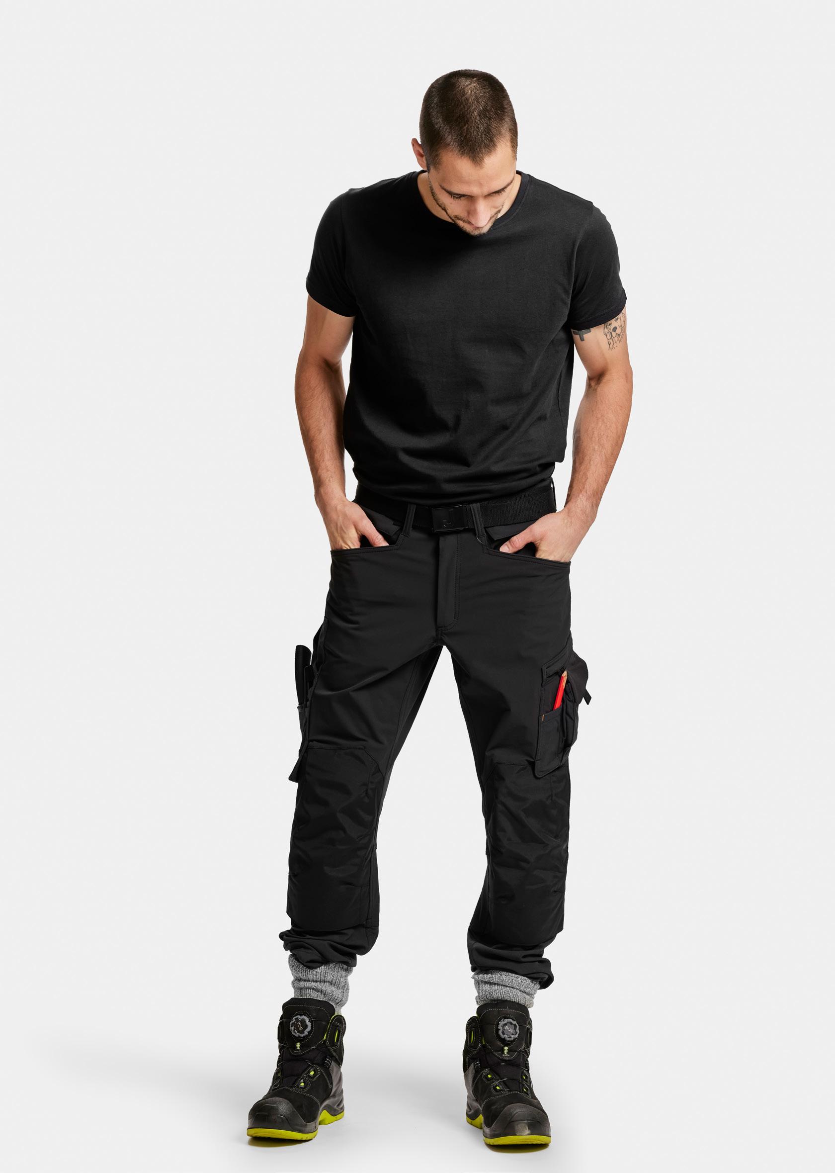 Med frihängande bakfickor, förstärkta hölsterfickor och blixtlåsförsedd benficka ger de smidig åtkomst till verktyg och håller dina personliga saker säkert på plats. Materialen är noggrant utvalda och kombinerade i olika delar av byxan, skurna och sydda för att följa kroppens naturliga form. Resultatet är robusta byxor som samtidigt ger full rörlighet och ventilation där det behövs.