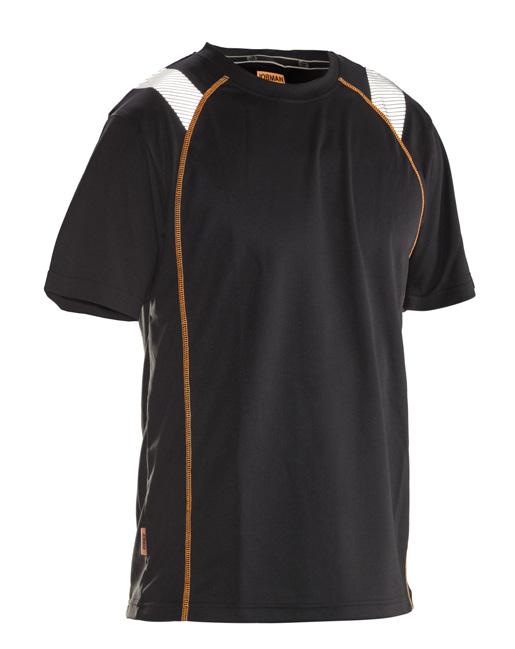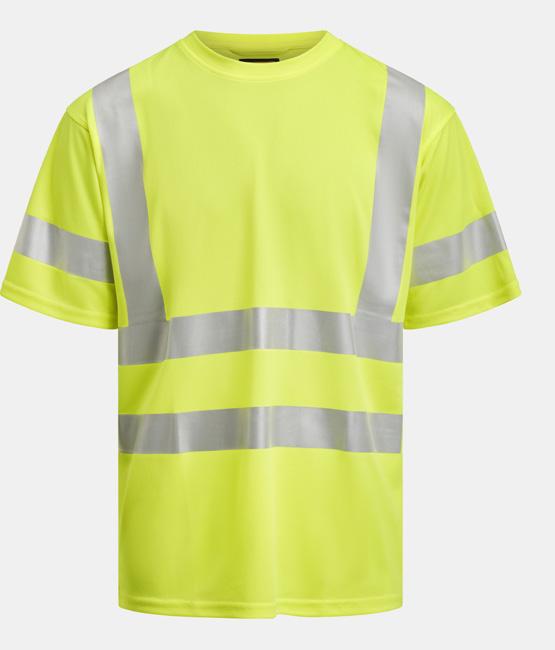 Skön funktions T-shirt i snabbtorkande material. Påvärmd reflextransfer, Jobman design. Reflexer över axlarna för ökad synbarhet. Certifierad i varselklass 2/3 enligt EN ISO 20471.