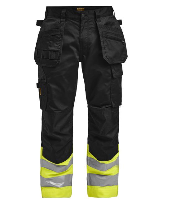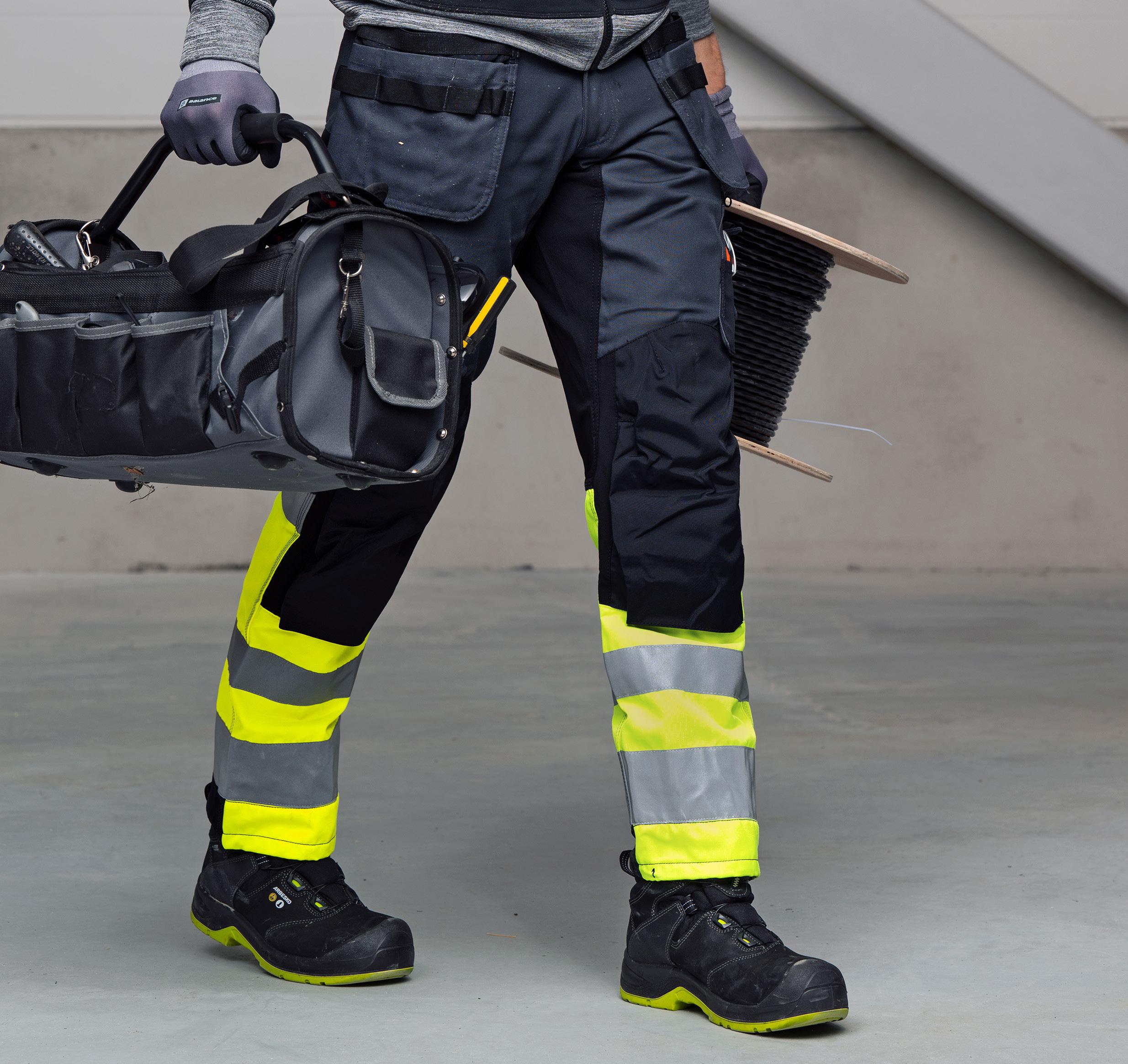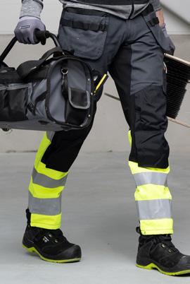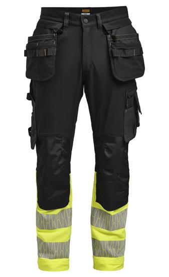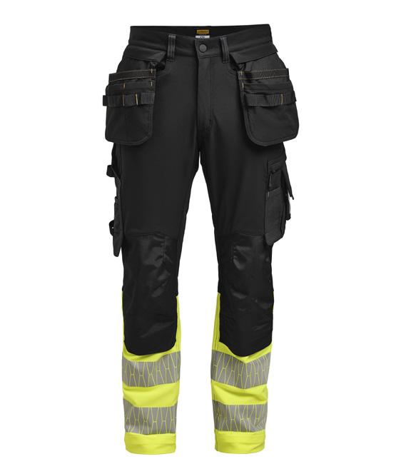 Servicebyxa i 4-vägs stretch, EN20471 klass 1. Baserad på Service byxa stretch 2318. Rymliga framfickor. Stolpfickor bak. Blixtlåsförsedd benficka med extra fack inuti för mobilen. Plats för pennor i denna ficka.