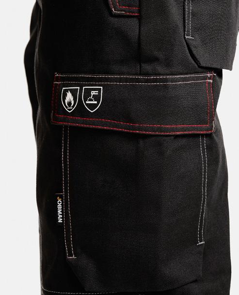 Byxor med symbolen är certifierade enligt EN 14404: 2004+A1: 2010 Typ 2 Nivå 1 tillsammans med Jobmans knäskydd 9943, 9944 och 9945.