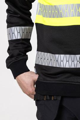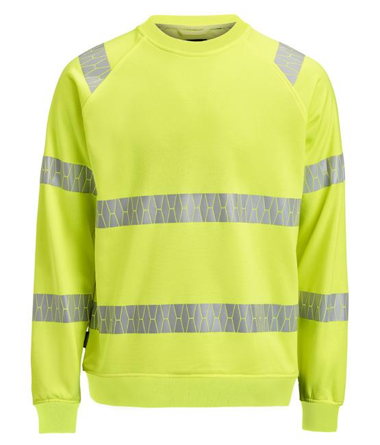 Sweatshirt i behagligt material, med öglad insida. Ribb i halsringningen, nederkant och ärmavslut. Påvärmd reflextransfer, Jobman design. Reflexer över axlarna för ökad synbarhet. Certifierad i varselklass 2/3 enligt EN ISO 20471.