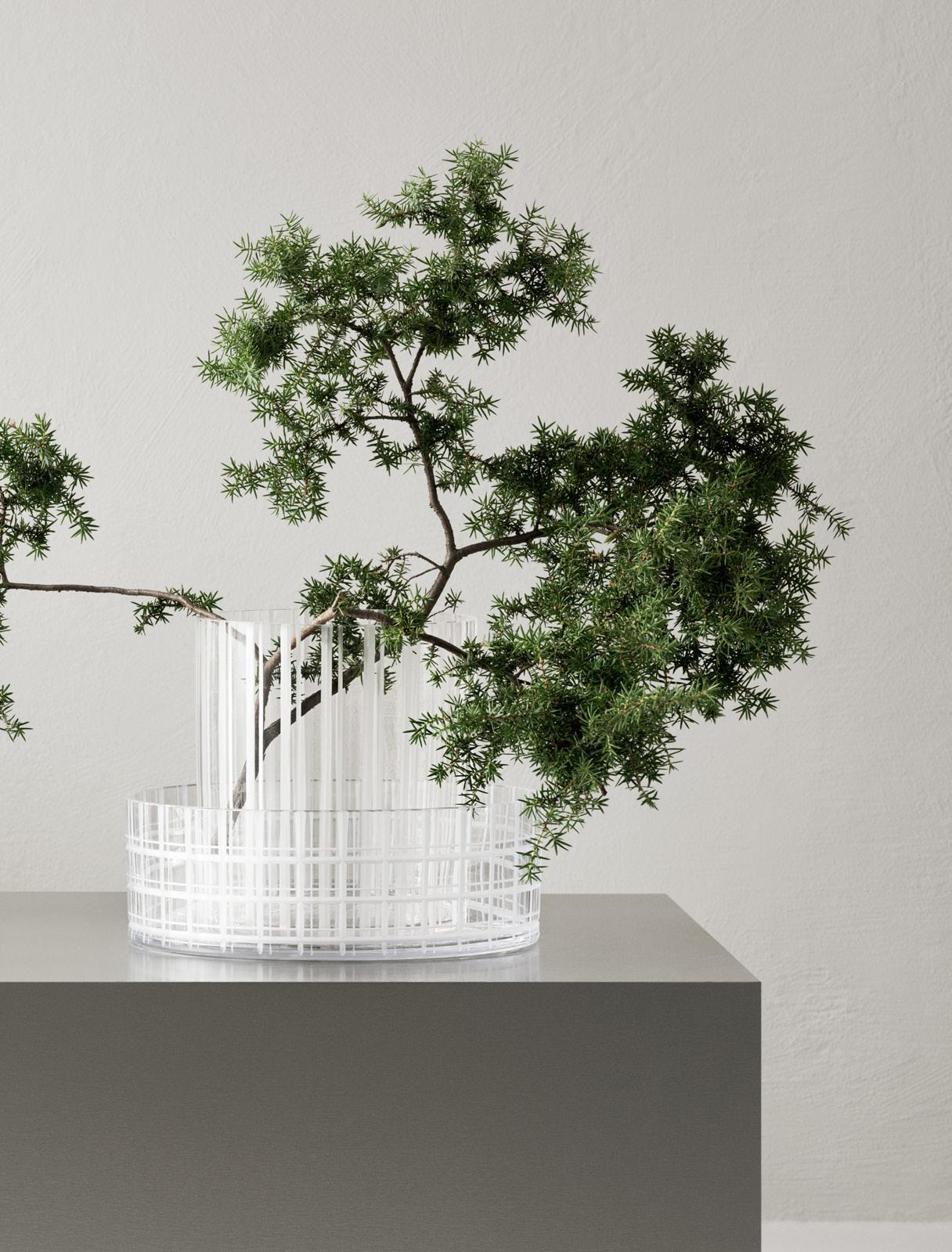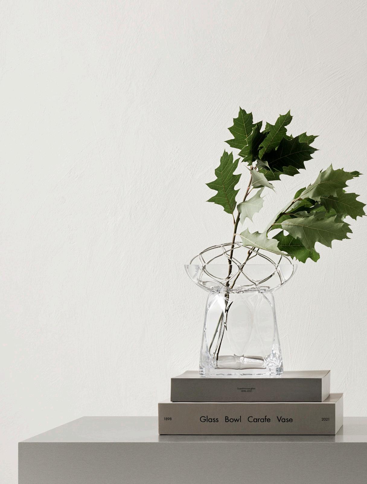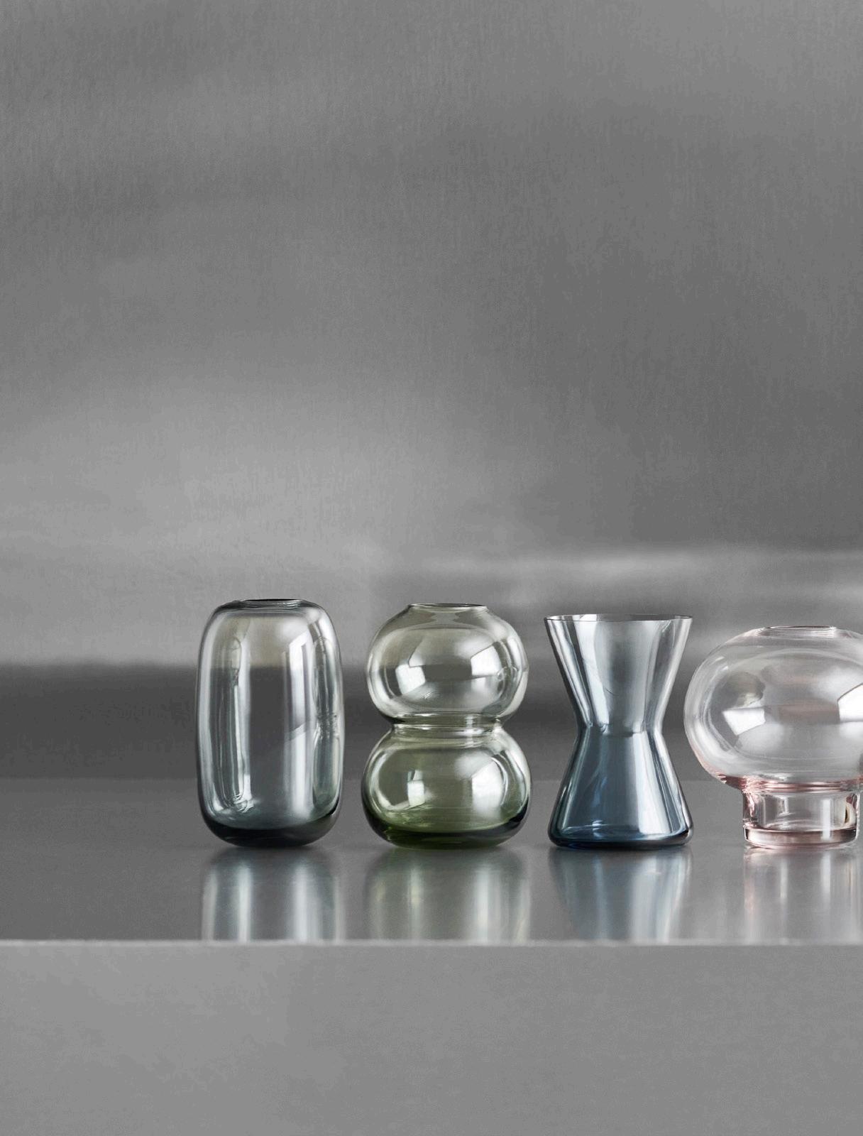 Bloom föddes ur en fråga: Kan en vas vara lika vacker utan blommor, som med? Formgivaren Lisa Hilland riktade uppmärksamheten mot naturens sinne för geometri och skapade en form som är både enkel och detaljrik.Glasets form följer den löstagbara överdelen i metall på ett sätt som gör dem till en skarvlös enhet. Båda delarna reflekterar ljuset, men på helt olika sätt. För den som vill ha blommor i sin Bloom, erbjuder metallnätet möjligheten att skräddarsy sitt eget arrangemang, om det så handlar om en enda välvald blomma eller kvist. Serien