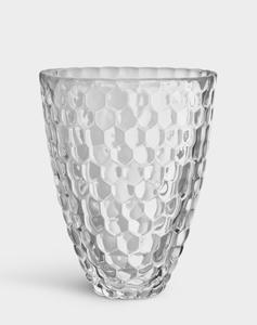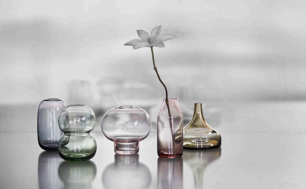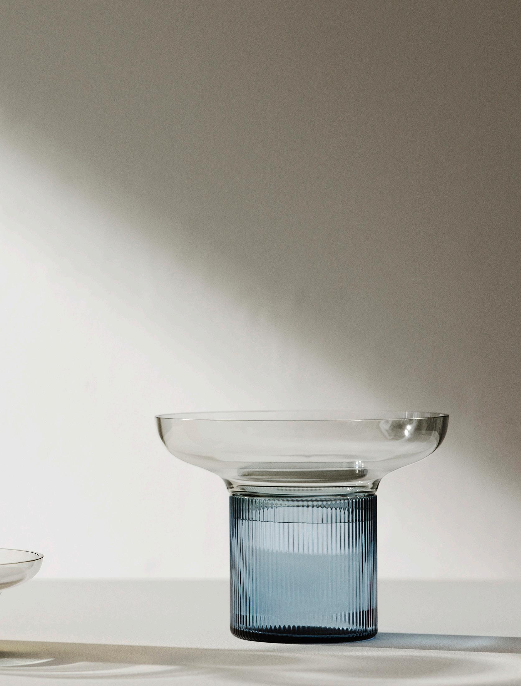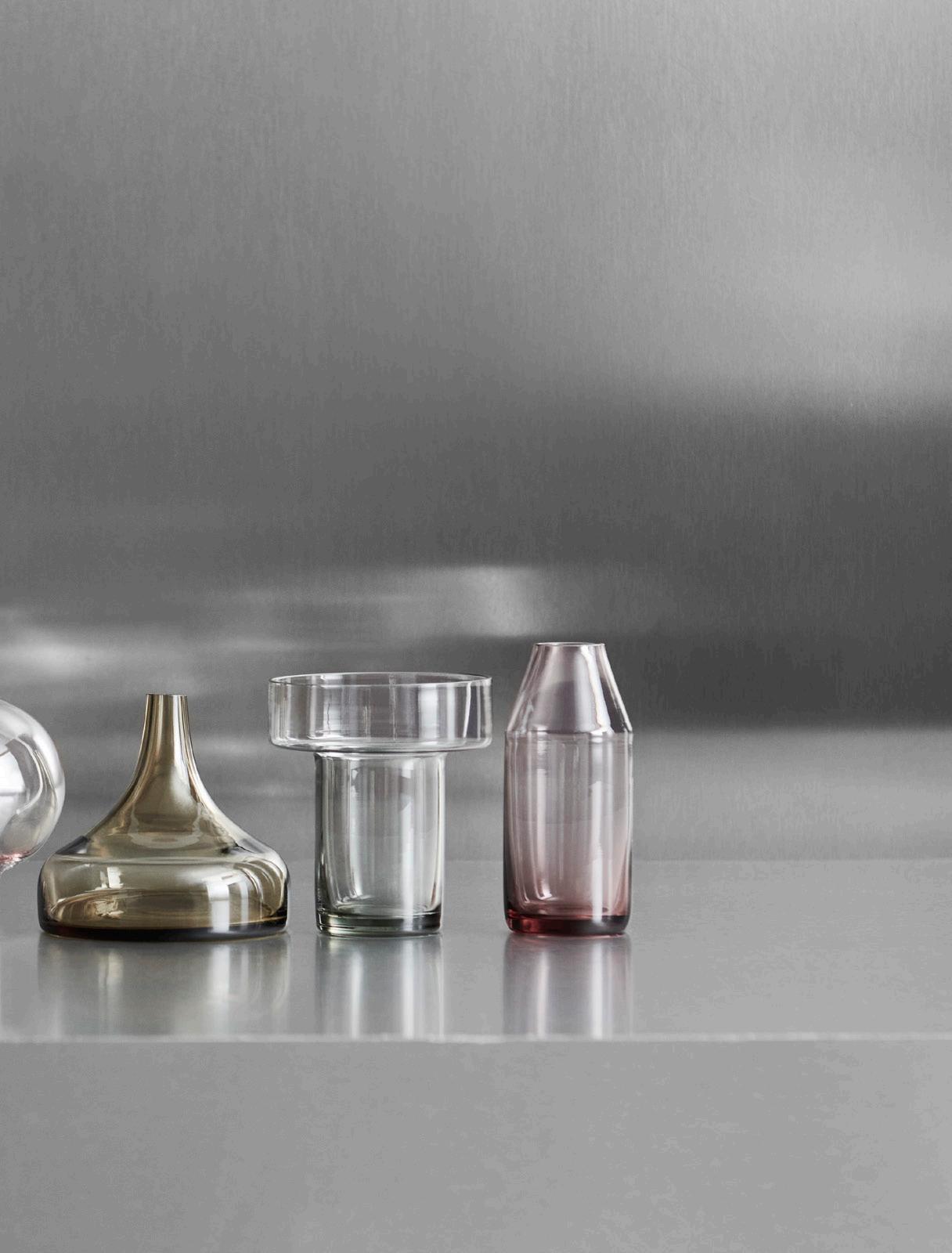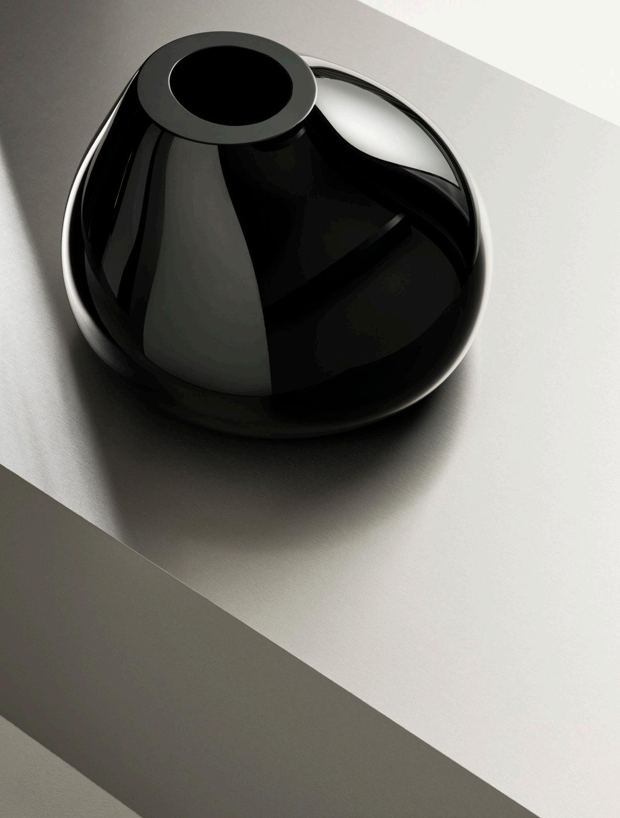 Bloom föddes ur en fråga: Kan en vas vara lika vacker utan blommor, som med? Formgivaren Lisa Hilland riktade uppmärksamheten mot naturens sinne för geometri och skapade en form som är både enkel och detaljrik.Glasets form följer den löstagbara överdelen i metall på ett sätt som gör dem till en skarvlös enhet. Båda delarna reflekterar ljuset, men på helt olika sätt. För den som vill ha blommor i sin Bloom, erbjuder metallnätet möjligheten att skräddarsy sitt eget arrangemang, om det så handlar om en enda välvald blomma eller kvist. Serien
