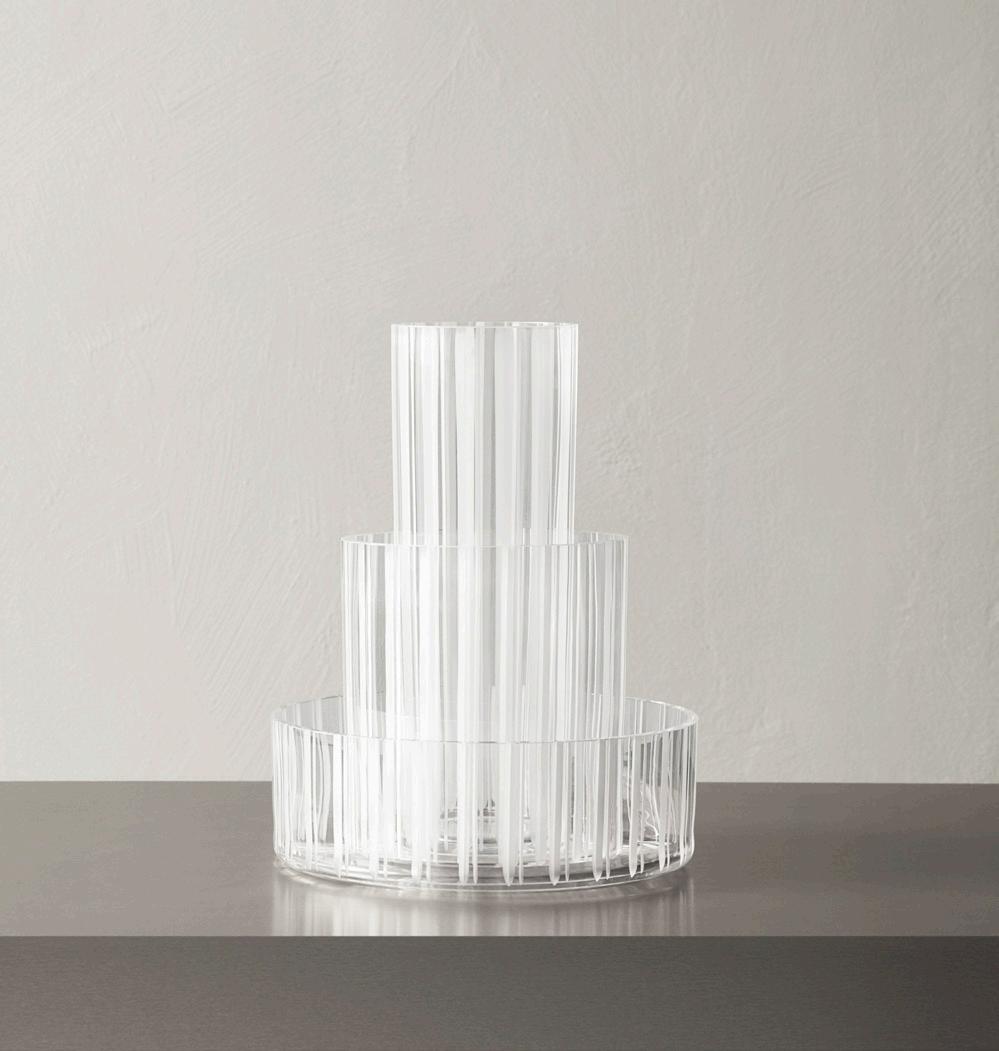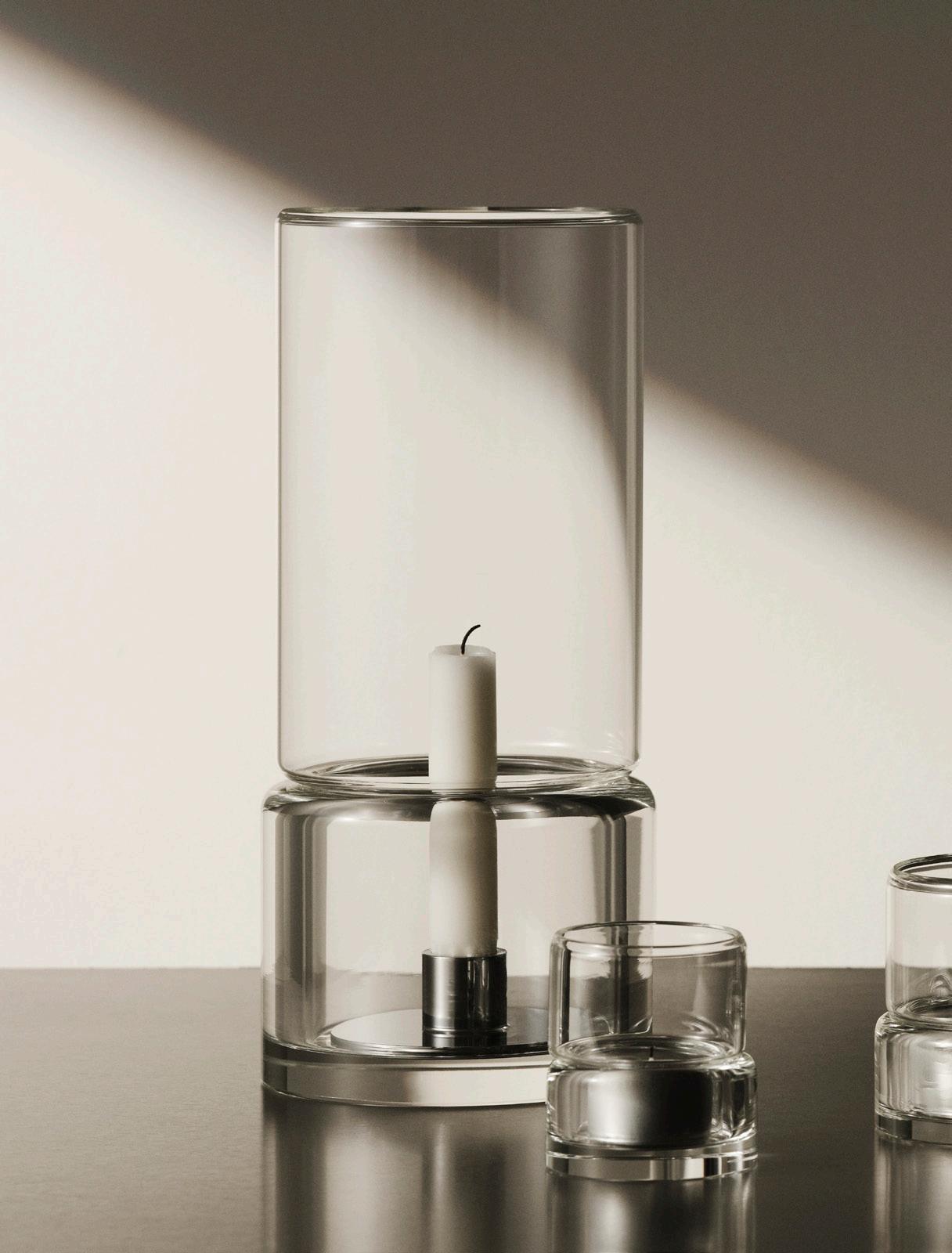 Tou, skapad av Claesson Koivisto Rune och Orrefors, visar hur en etablerad funktion kan få ny form. Inspirerade av den klassiska stormlyktan, har formgivarna delat upp Tou i två komponenter: dels ett fundament i tjockare glas, dels en tunnare och högre cylinder placerad inuti. De olika lagren och tjocklekarna reflekterar rummet och ljuslågan på ett sätt som får blicken att dröja kvar. Duka med Tou både ute och inne. Ljusen är lätta att tända när du lyfter av överdelen. Och med det höga glaset på plats brinner lågan lugnt, även om kvällsbrisen kommer. Tou finns i tre storlekar: en mindre ljuslykta för små värmeljus, en mellanstor för stora värmeljus och en stor stormlykta för blockljus eller ett klassiskt stearinljus (en praktisk hållare i metall medföljer).