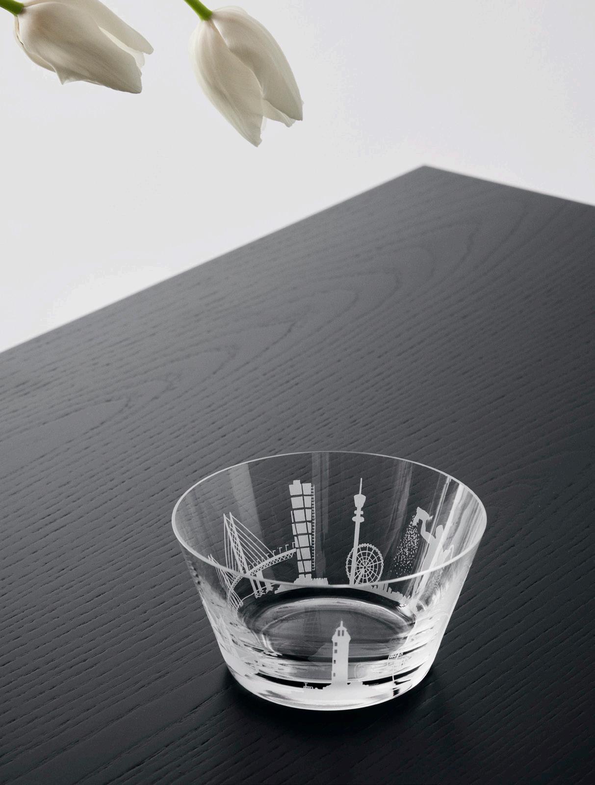 Stockholm, Göteborg, Malmö… välkända profiler från våra svenska städer blir här en böljande dekor runt skålen, etsad på glasets yta. Lagom stor för godsaker, lätt att packa och ta med hem som minne från besöket i Sverige och omvänt - den perfekta, typiskt svenska presenten till utländska besökare och vänner.