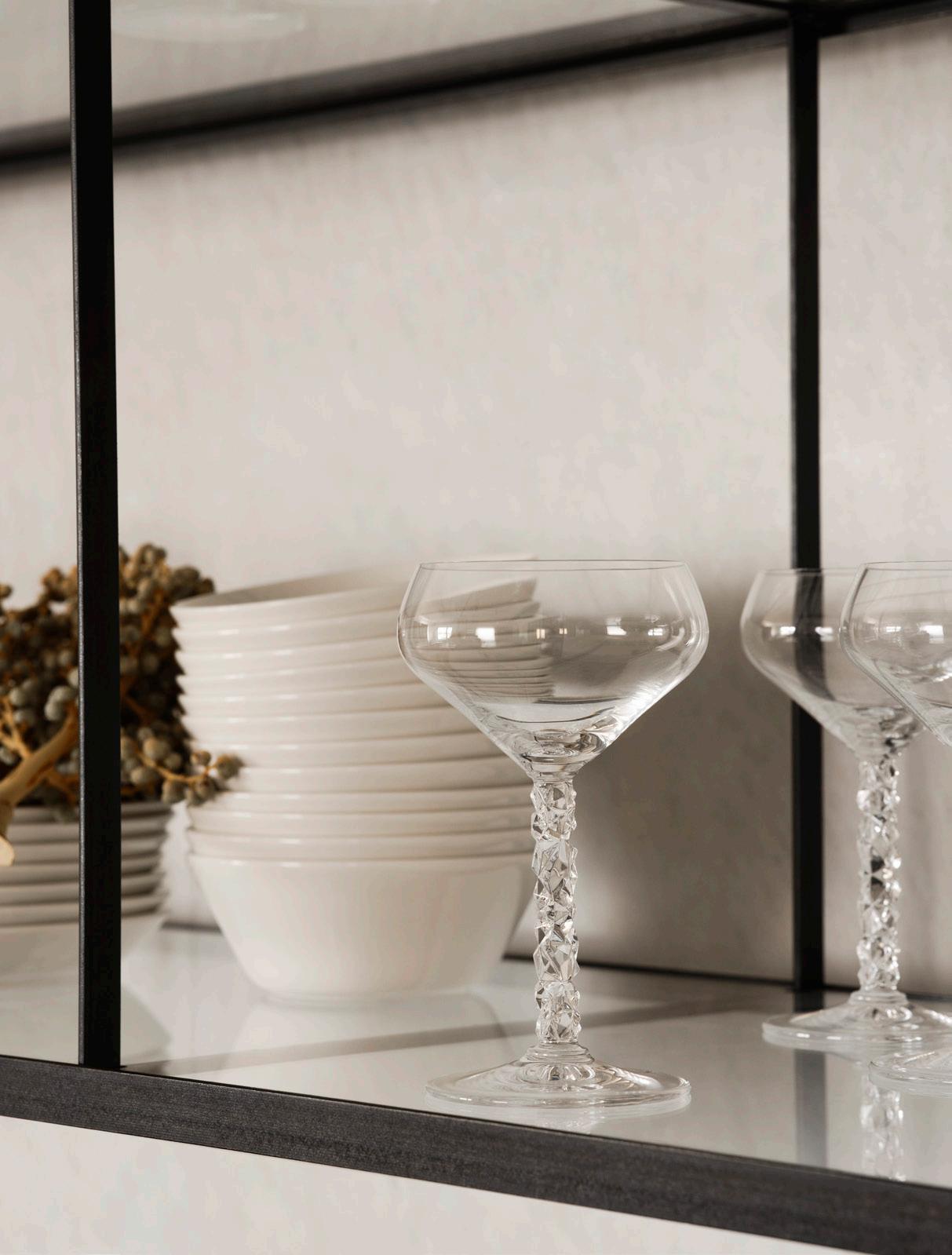 Manhattan är ett av världens bartätaste områden. Vanan att ta en drink tillsammans på takbarer, finkrogar och kvarterskrypin har alltid varit en naturlig del av storstadslivet. Med barserien Street förde Jan Johansson samman Orrefors skandinaviska designtradition med inspiration från NYHET Yorks världsberömda rätlinjiga rutsystem av gator och avenyer. Kristallens krispiga renhet går igenom alla glastyperna, som finns för allt från champagne till cognac och – självklart i sammanhanget – dry martini. Dessutom omfattar Street både karaff och ishink, med nattsvarta detaljer som kontrasterar mot glasets klarhet. Serien lanserades 2006.