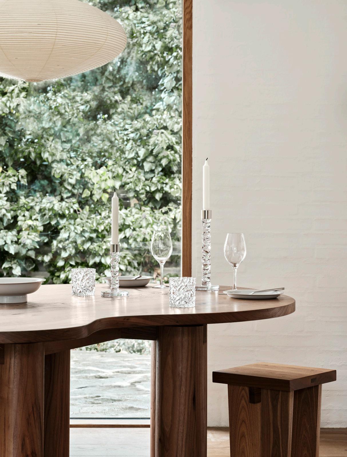 Tou, skapad av Claesson Koivisto Rune och Orrefors, visar hur en etablerad funktion kan få ny form. Inspirerade av den klassiska stormlyktan, har formgivarna delat upp Tou i två komponenter: dels ett fundament i tjockare glas, dels en tunnare och högre cylinder placerad inuti. De olika lagren och tjocklekarna reflekterar rummet och ljuslågan på ett sätt som får blicken att dröja kvar. Duka med Tou både ute och inne. Ljusen är lätta att tända när du lyfter av överdelen. Och med det höga glaset på plats brinner lågan lugnt, även om kvällsbrisen kommer.
