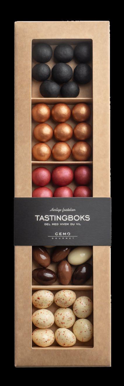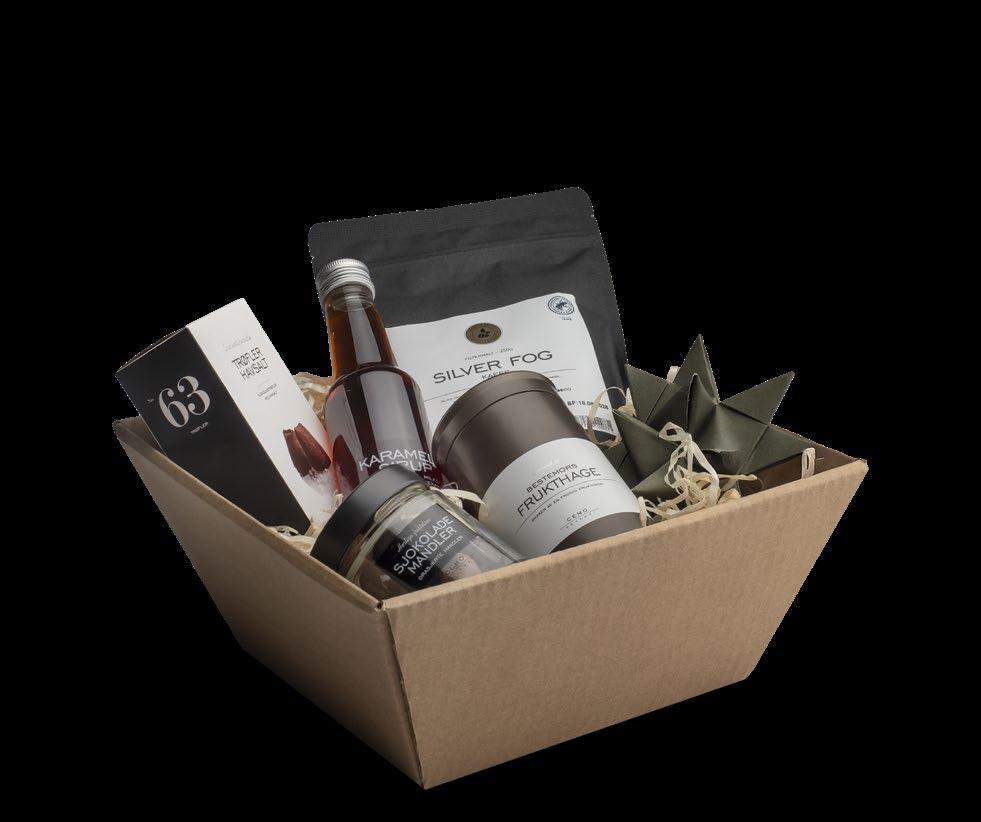Hygge og smaksglede fra første øyeblikk, vakkert innpakket cellofan med sløyfe.