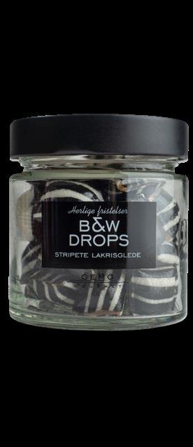 Stripete lakrisglede. Smakfulle og knasende lakrisdrops i hvitt og sort.