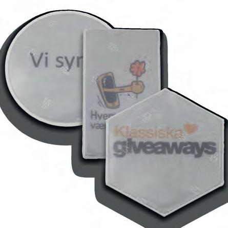 Du finner også frisbees, sitteunderlag, reflekser, glass og krus i denne delen. På alle disse artiklene kan du sette ditt eget preg. Ensfarget, flerfarget eller fototrykk. Velg det som passer deg best.