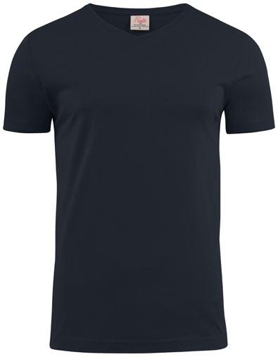 Modern V-ringad T-shirt med förstärkta axelsömmar och nacke. Stretchig 2-lagers ribb i halshål. Oeko-tex certifierad