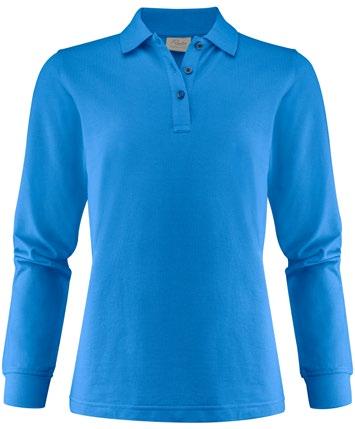 Piké med långa ärmar, slätstickad krage och sidoslitsar. 3-knapps stängning. I vänster sidosöm finns en tvättchipficka. Oeko-Tex 100 certifierad. Förpackad i en biobaserad, komposterbar påse.