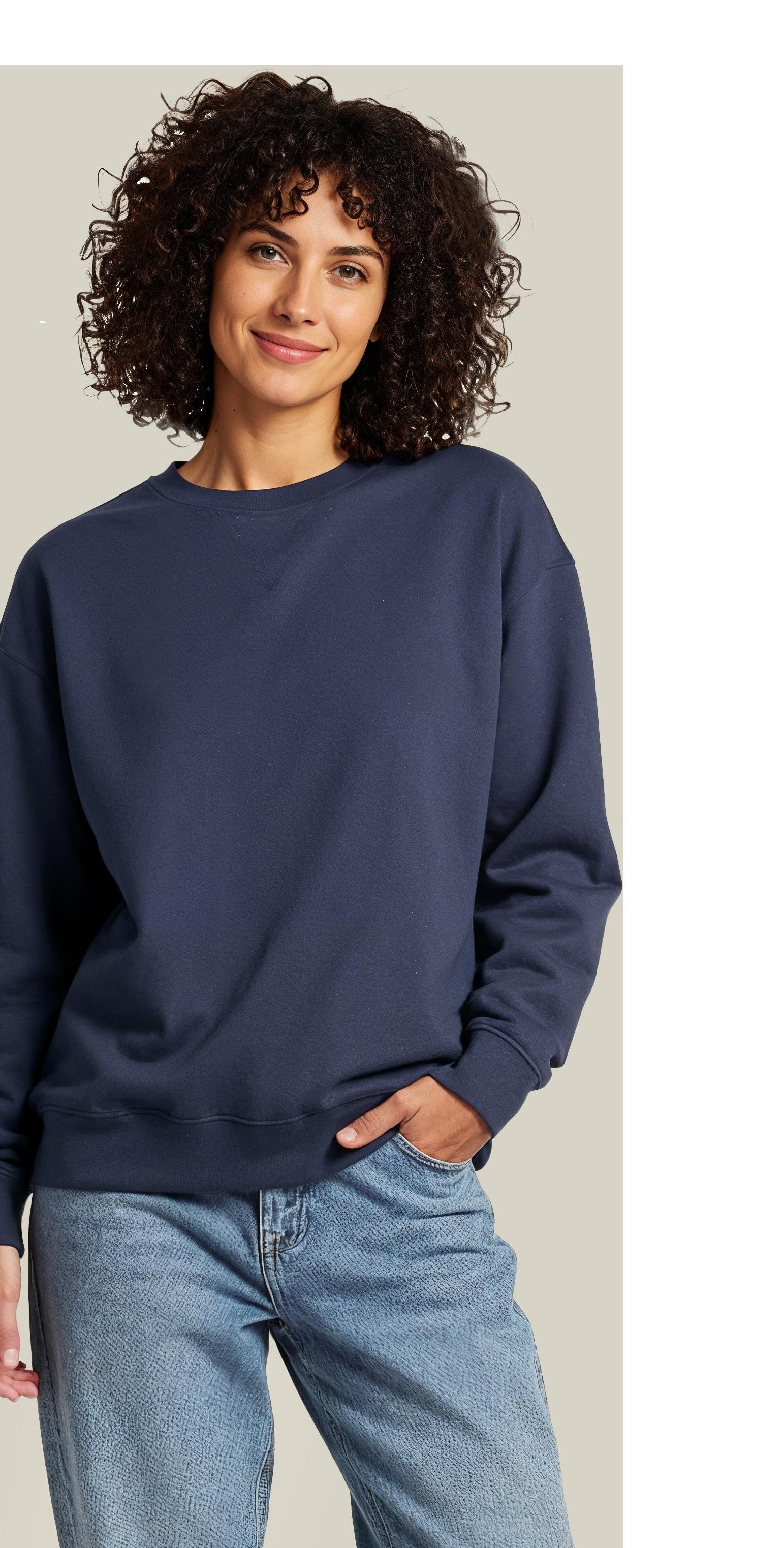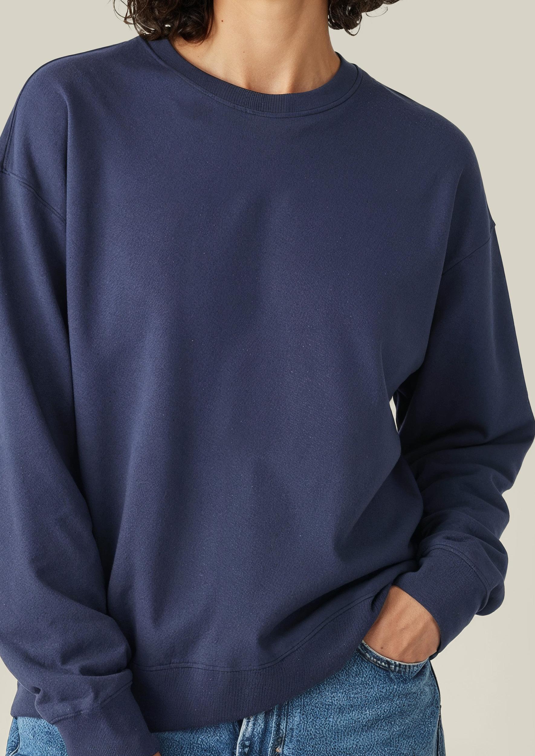 This unisex sweatshirt offers a cool, relaxed fit, crafted from a blend of 80% organic cotton and 20% recycled polyester. With a durable 350 g/m² fabric weight, it provides a soft, comfortable feel. Featuring ribbed 2x1 collar, cuffs, and bottom hem. The crewneck is enzyme-washed for a smooth, worn-in feel.