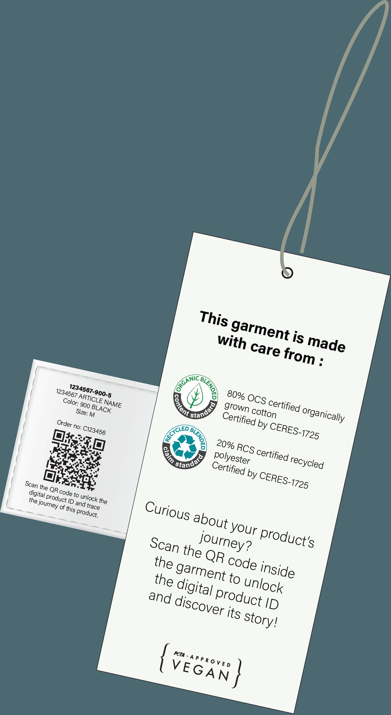 Untagged Movement loves transparency. Just scan the QR code on the label inside the garment to get the full Digital product ID info and learn more about: