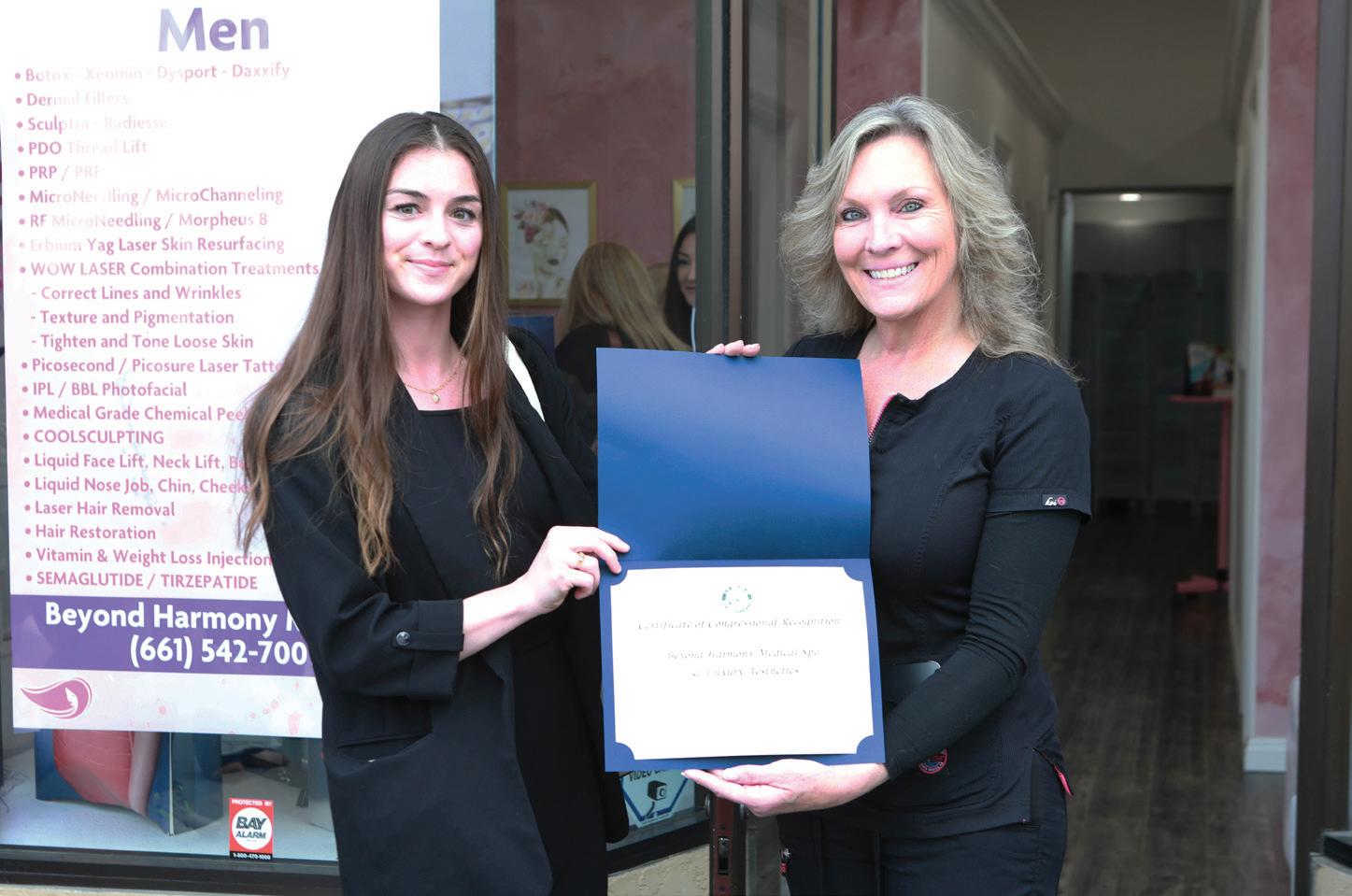 Isabell Yaralian, Assistant Field Deputy for LA County Supervisor Kathryn Barger congratulates Christy Powers, Founder and CEO of Beyond Harmony Medical Spa & Luxury Aesthetics on her grand opening. Photo credit: Joie de Vivre Photographie