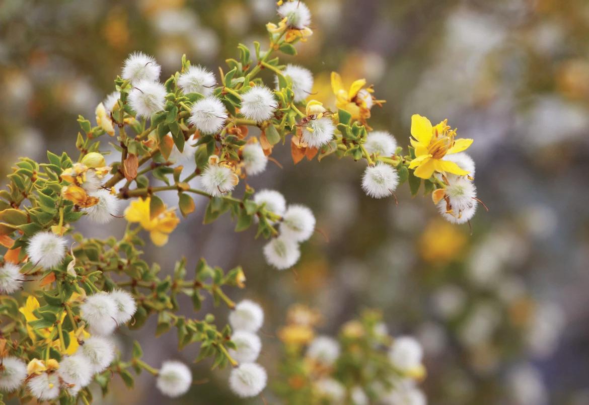 The Creosote bush (Larrea tridentata) is not just common to the California desert areas, it’s dominant. It’s a hardy plant and an anchor of the desert, according to the National Park Service.
