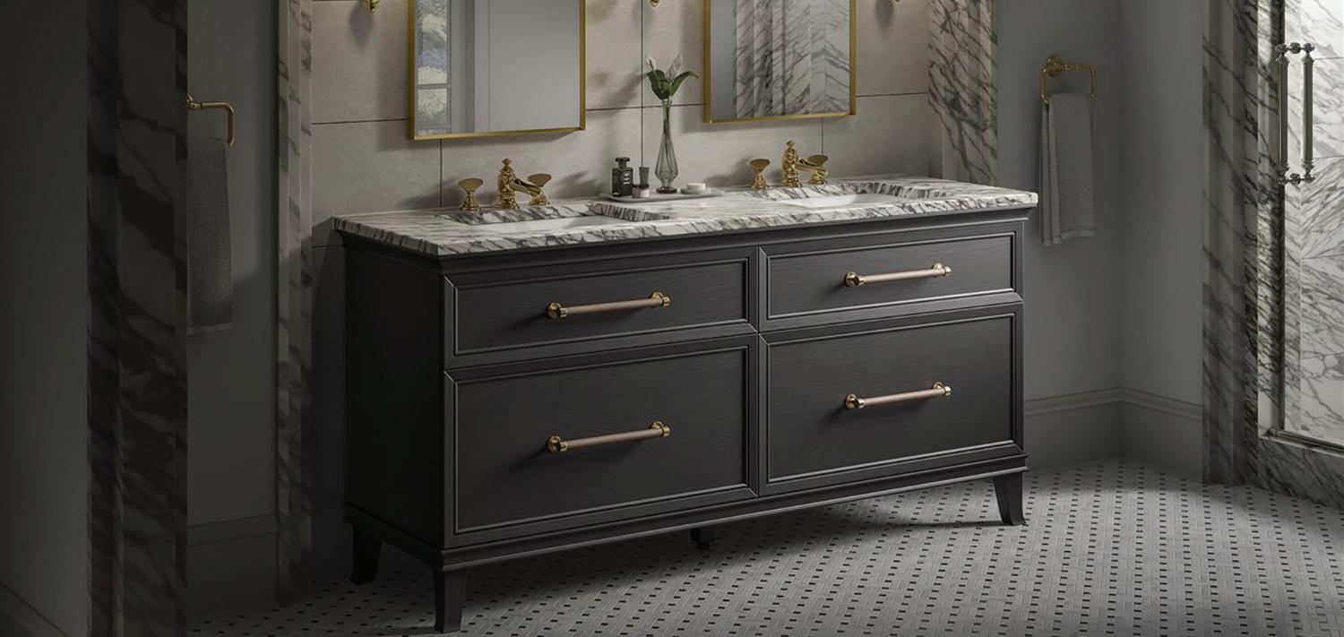 The hardware you choose sets the tone and style of a bathroom. If you currently have cool silver drawer pulls, faucets, towel bars and other fixtures with a polished finish, consider switching to warm gold or bronze hardware with a brushed finish. Keep in mind that you can mix and match colors, materials and finishes to create a bathroom with hardware tailored to your taste. For example, if you want to upgrade your faucet, check out Kohler’s Mix & Match Faucet options. Three faucet collections provide you with the freedom to choose the spout style, handle and finish.