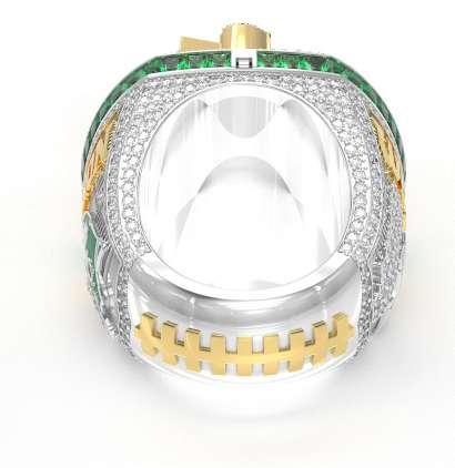 Layer your logo on top of a custom cut stone, your trophy, or design of your choice. You also have the option to choose a textured stone or pack your ring with stones. We offer this pro-level of customization for teams who want to completely ice-out their rings.