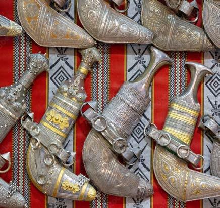 Silver craftsmanship in Oman has a long-standing tradition, deeply rooted in the country’s culture and history. Omani silverwork is particularly renowned for its intricate craftsmanship and detailed embellishments. Among the most famous pieces are the traditional silver daggers, known as “Khanjars,” which are worn by men on special occasions.These daggers are adorned with elaborate engravings and patterns, often passed down through generations.