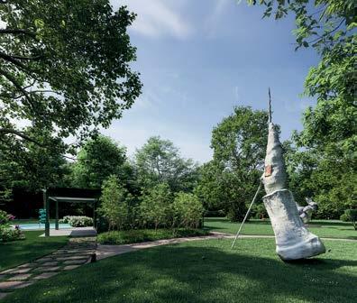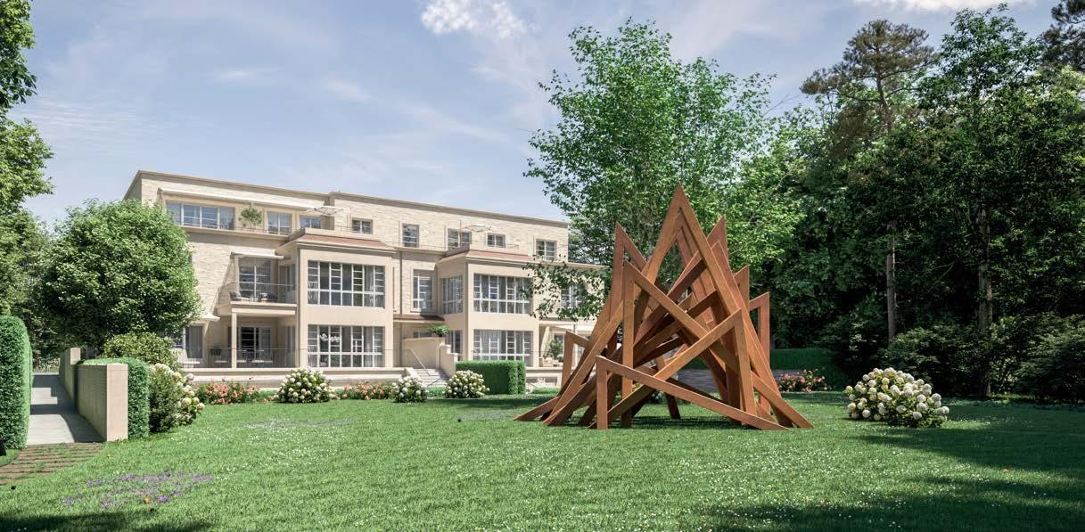 Gabriele Henkel transformed this estate in Düsseldorf into a place of intellectual and cultural exchange between great minds. With Chami9, FRANKONIA Eurobau is not only continuing the name that Gabriele Henkel gave the property, but also giving it a new soul with art. In addition to a new, stylish urban villa with just five residential units, a privately owned sculpture park is also being created here, which will be a memorial to the life and work of the great art lover and bring a piece of the history of the early Federal Republic of Germany into the future.
