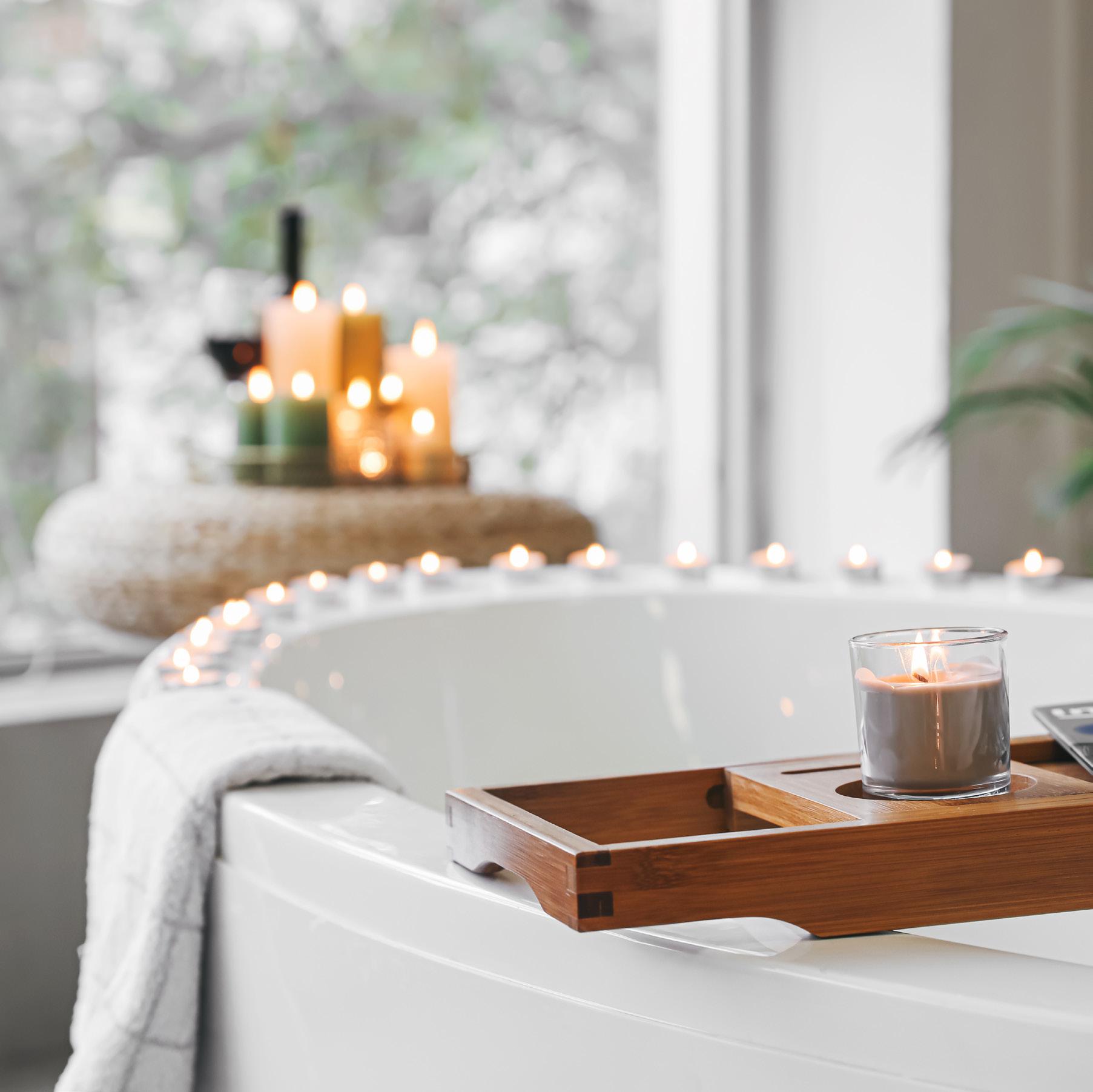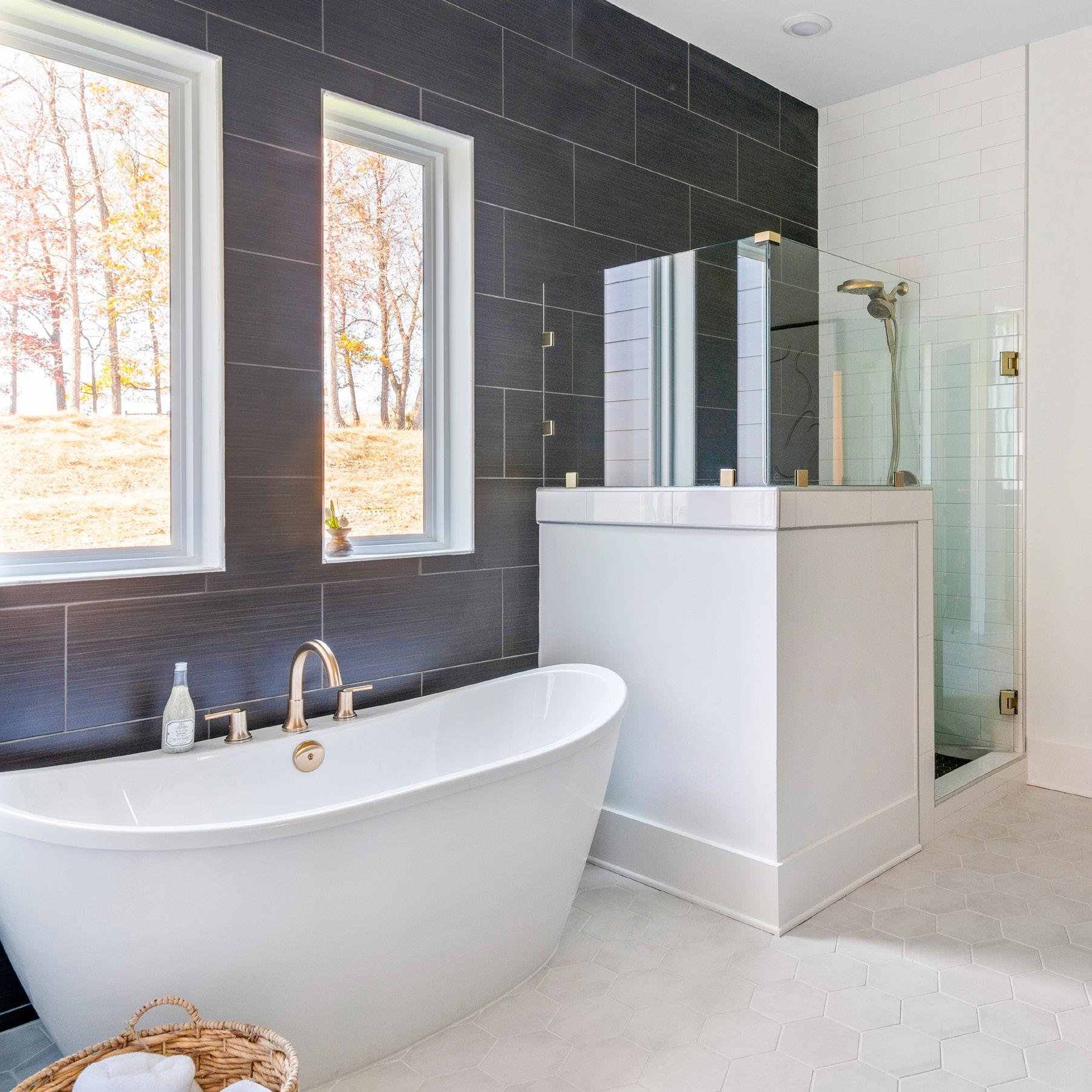 c VIKRELL TUB WITH TILE SURROUND: INCLUDES: Tile Surround to Ceiling, Schluter Trim and 1 Inset Shower Niche