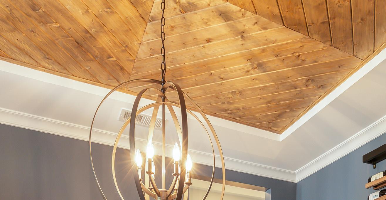 be combined with vaulted beams or tray ceilings.