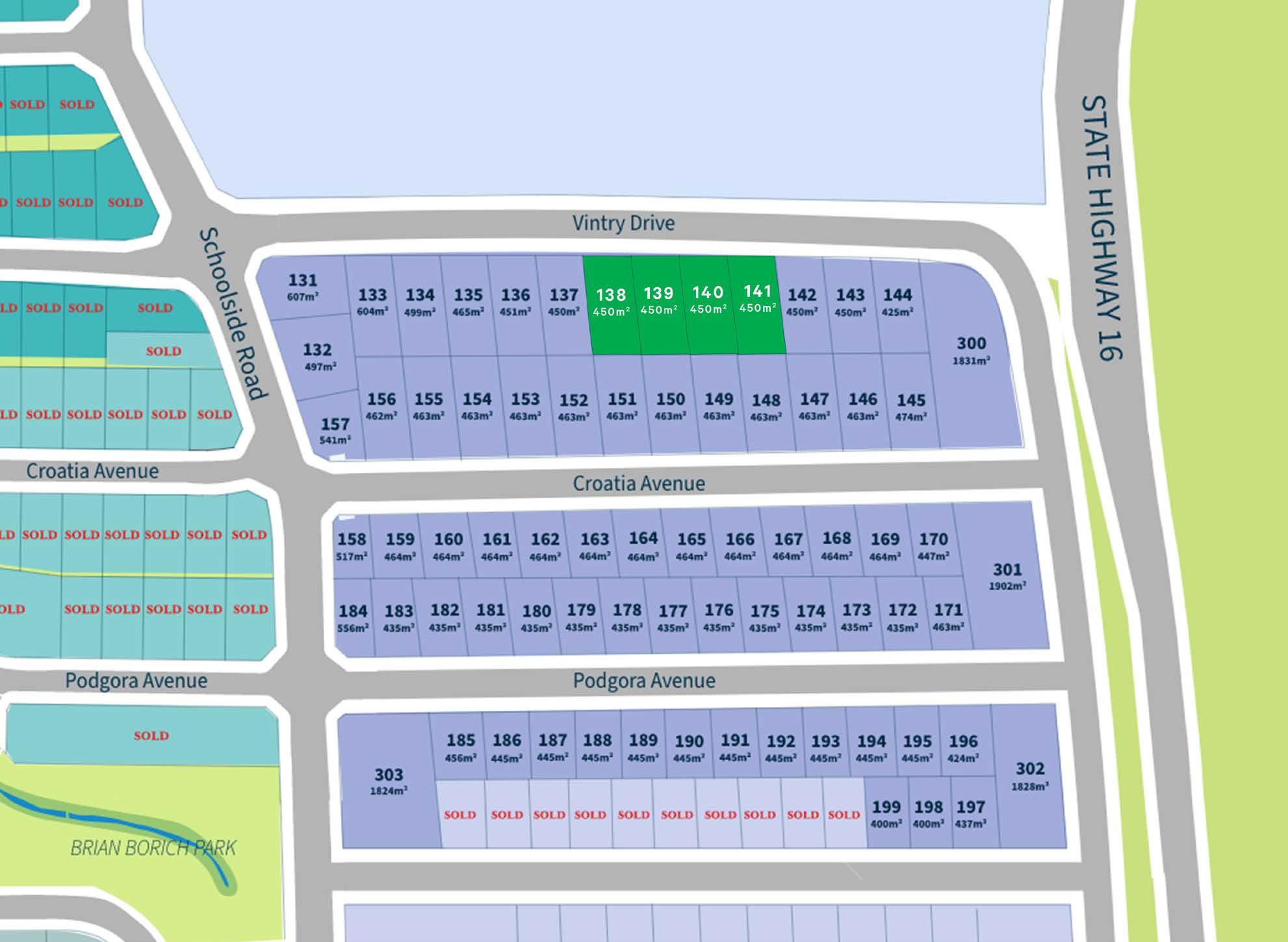 The four centrally located sites are all part of the Stage 6 release, and offer 450m2 of flat land to build on. With multiple recreation reserves and shared cycle and walkways close by, Huapai Triangle offers a modern, family lifestyle.