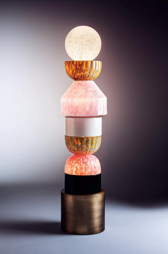 La collection Totem, dessinée par Marie-Victoire Winckler, est en verre soufflé bouche texturé, ornementé de céramiques. La famille se compose d’appliques murales, lampes à poser ou à suspendre pouvant aller jusqu’à deux mètres de haut. Utilisant des éléments en céramique amovibles, chaque pièce est unique selon la composition et les coloris choisis.